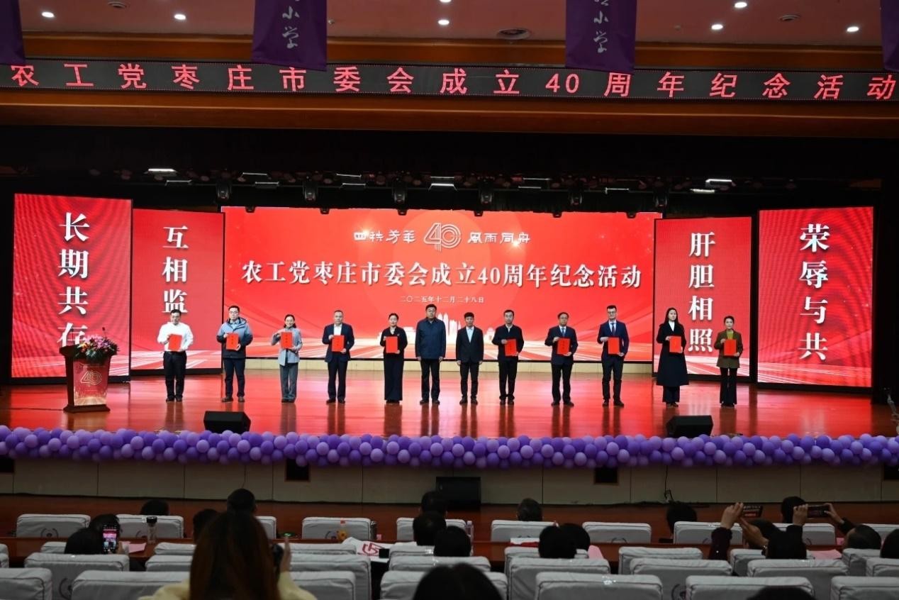 活动中,向加入农工党40周年、30周年党员颁发纪念章,表扬了先进集体和先进个人,举办了文艺汇演。其中,农工党枣庄职业学院支部主委赵新岳荣获“优秀党务工作者”称号,农工党党员李荣荣获评“优秀农工党党员”。这一荣誉是对学院农工党成员长期以来立足本职岗位、服务发展大局、积极履行职责的充分肯定。