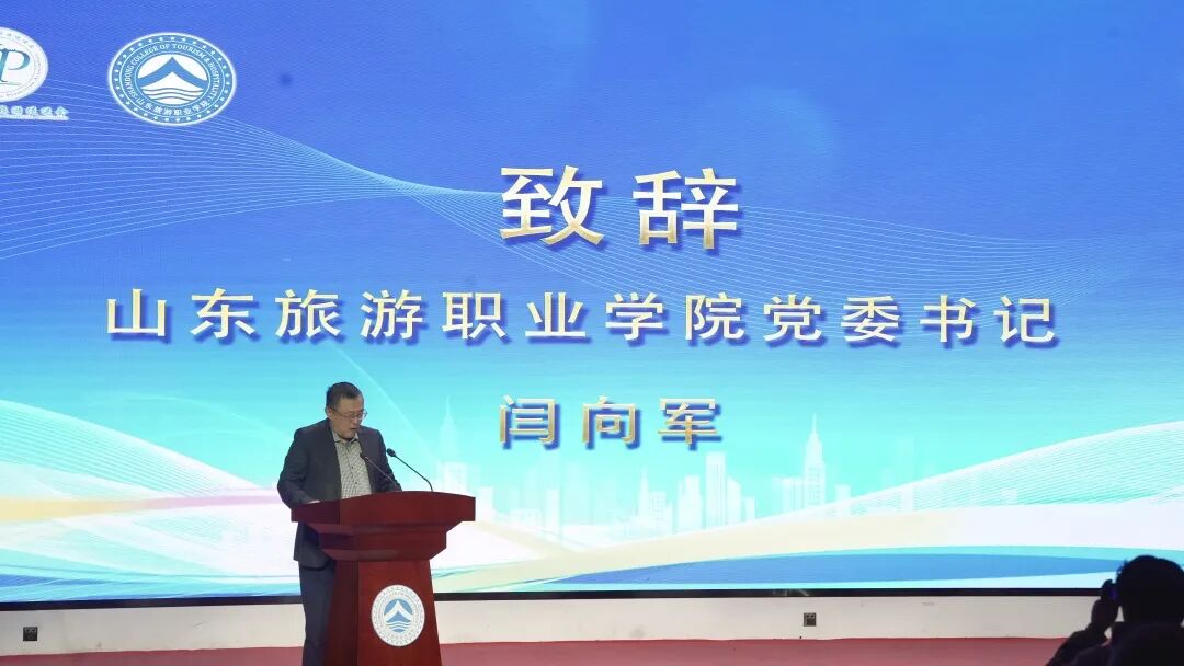 2026年1月7日下午,由山东省文化和旅游厅指导,山东省精品旅游促进会主办,山东旅游职业学院承办的“2025年山东省旅游产品营销AI设计大赛”颁奖典礼顺利举行。山东省委原副秘书长、省精品旅游促进会会长杜文彬,山东旅游职业学院党委书记闫向军出席典礼,山东旅游职业学院党委委员、副院长王建峰主持颁奖仪式。