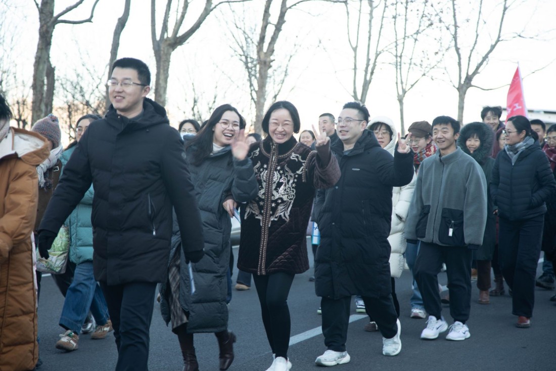 下午14时,教职工们精神饱满地齐聚中心大道广场。校工会主席张越代表学校向全体教职工致以诚挚问候和新年祝福。他在致辞中回顾道:“过去一年,我们在高质量发展道路上稳步前行,成绩凝聚着每一位教职工的辛勤与担当。”他指出,今天的健步走活动,既是践行健康中国理念的具体行动,也生动展现了全体教职工团结奋进的新风貌。他强调,2026年是“十五五”规划的开局之年,使命在肩,更需砥砺前行,号召大家“以强健体魄、昂扬斗志,携手迈向充满希望的2026!”