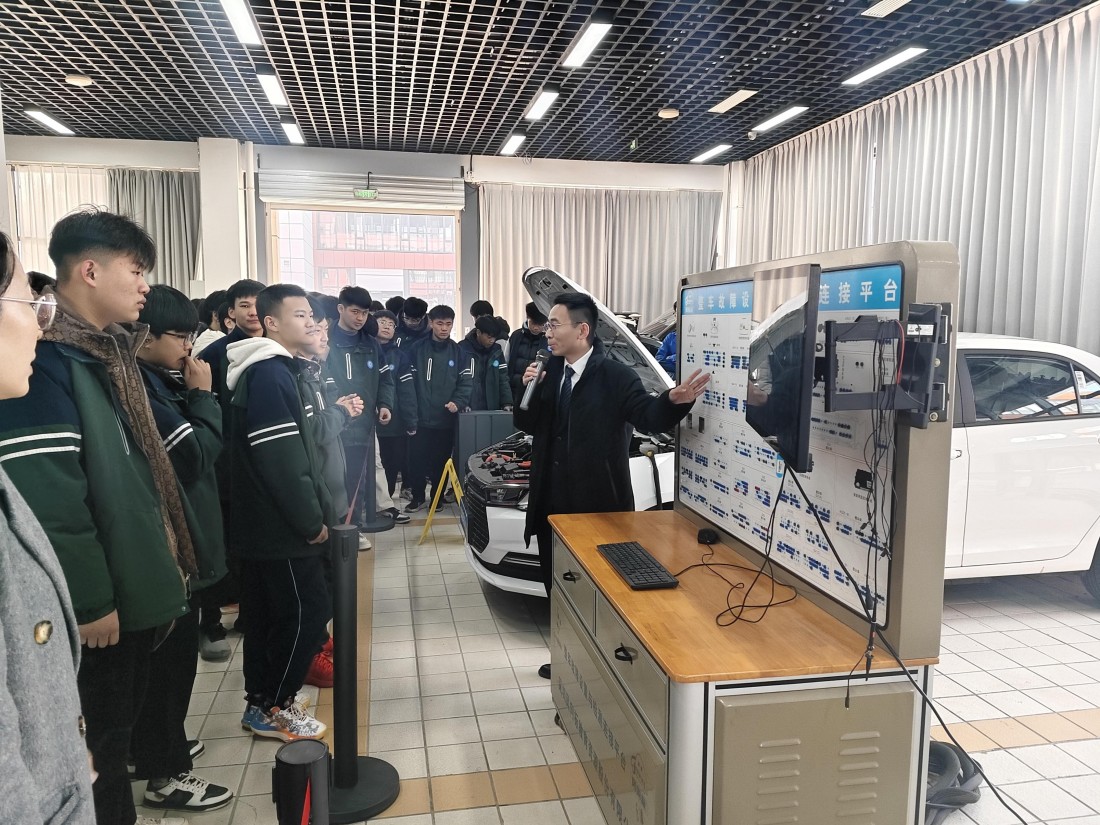 参观期间,新能源与汽车工程系、智能制造系教师通过“讲解+实操”形式,带领枣庄工商学校的学生们近距离观摩了汽车维修、机电类等专业的实训设备,深入了解实践教学流程与岗位技能要求,有效增强了学生对未来职业发展与升学深造的认同感和向往感。