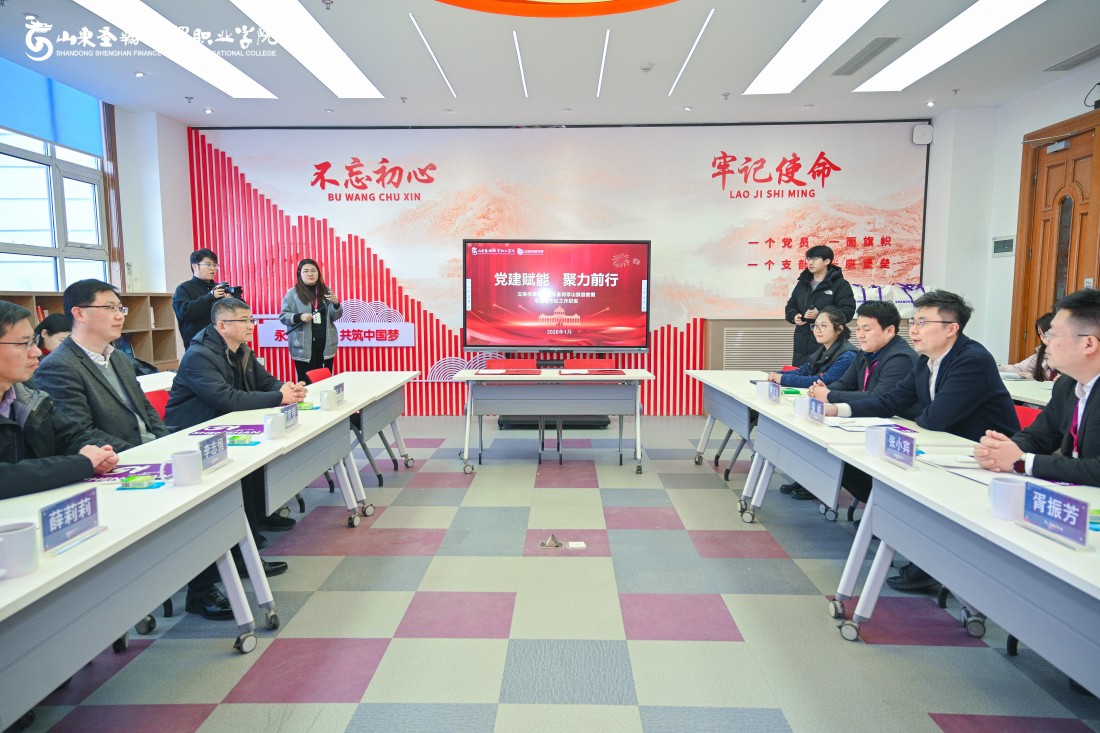 为深化校地党建融合,构建优势互补、资源共享的党建工作新格局,1月20日,山东圣翰财贸职业学院云商传媒学院党总支与济南市长清区万德街道8号路管理区党委党建共建签约仪式在山东圣翰财贸职业学院党员活动室举行。济南市长清区万德街道党工委书记、办事处主任杨官程,党工委副书记李志恒,8号路管理区党委书记王伟,马套将军山旅游度假专业合作社总经理薛莉莉一行出席签约仪式。山东圣翰财贸职业学院党委副书记、常务副校长姜峤,党委委员、党委宣传部部长张小宾,云商传媒学院党总支书记、院长李学治,教师党支部书记胥振芳及教师党支部党员同志共同参会。签约仪式由李学治主持。