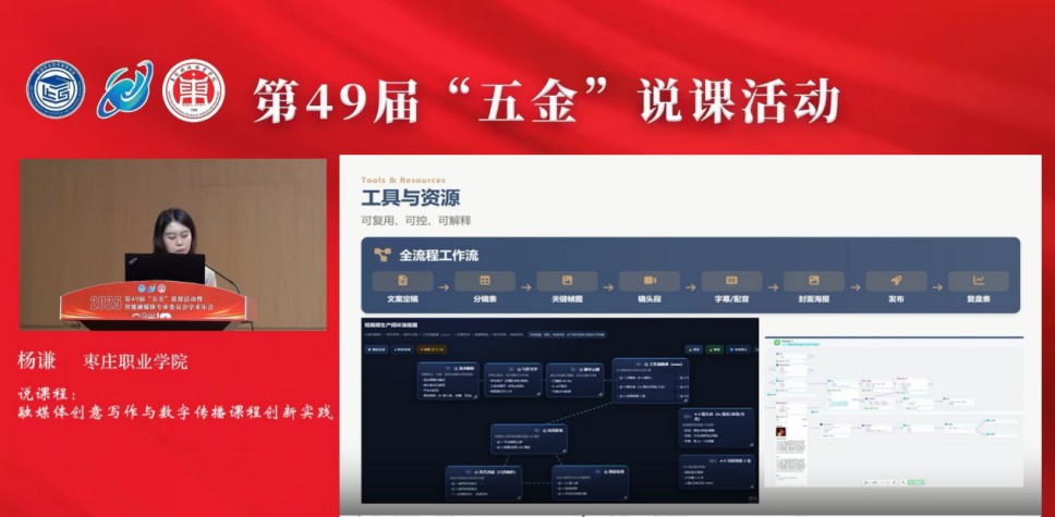 近日,中国职业技术教育学会第49届“五金”说课活动暨智能融媒体专业委员会学术年会在山东东营举办。枣庄职业学院教师杨谦以《融媒体创意写作与数字传播课程创新实践》为题作说课汇报,展示了学院在专业教学模式的探索与应用。