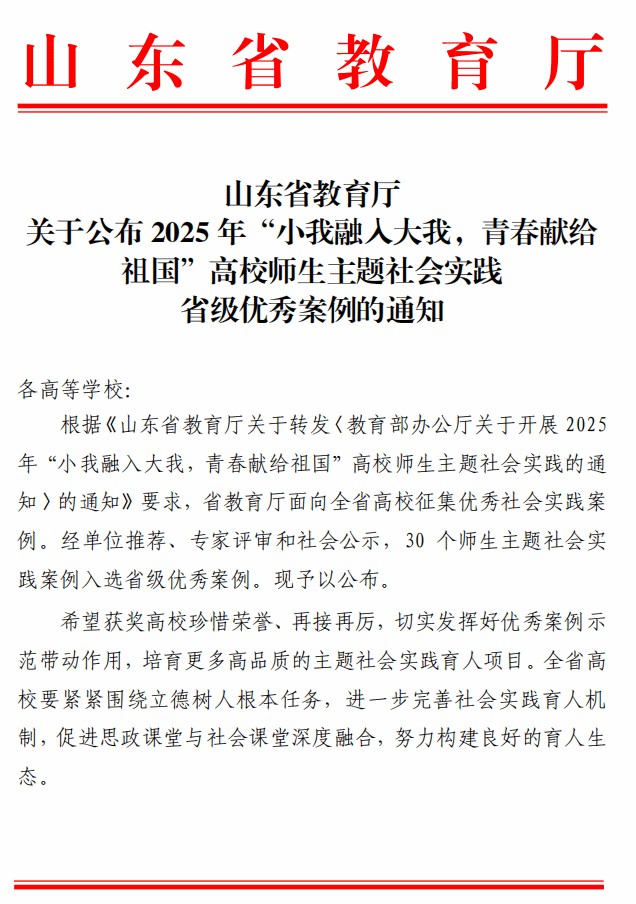 山东商务职业学院获评2025年高校师生主题社会实践省级优秀项目