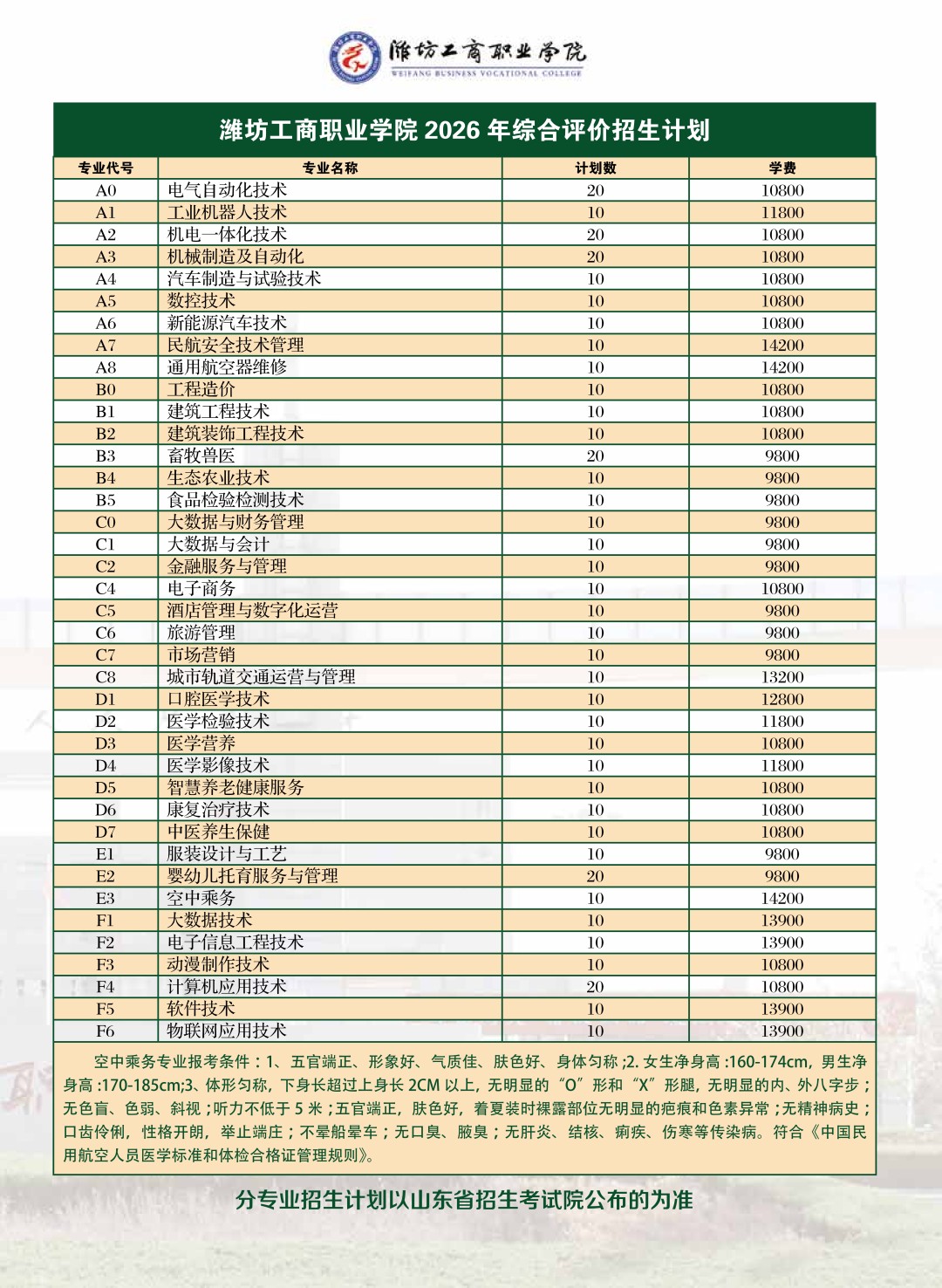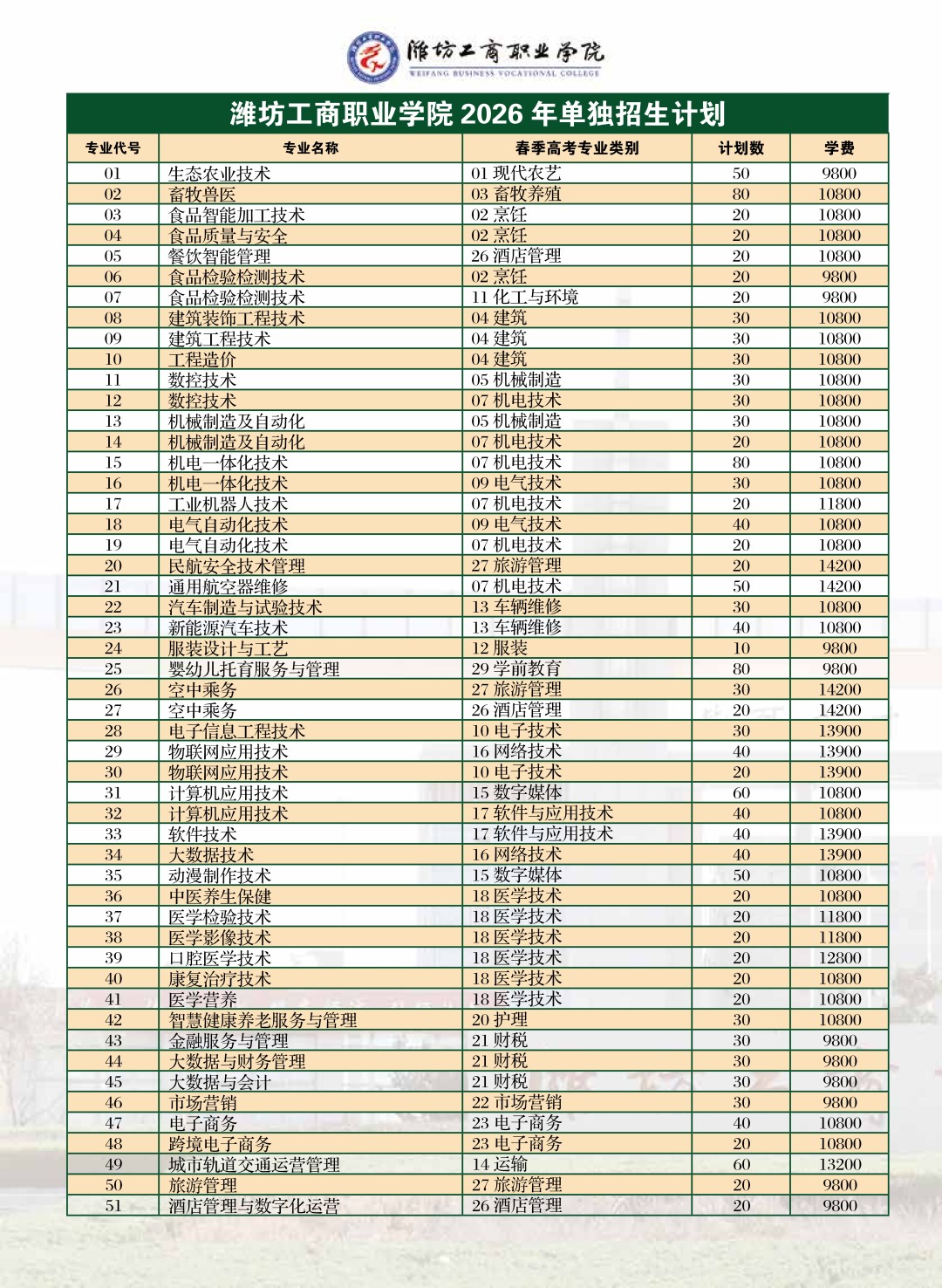 潍坊工商职业学院2026年单独招生、综合评价招生简章