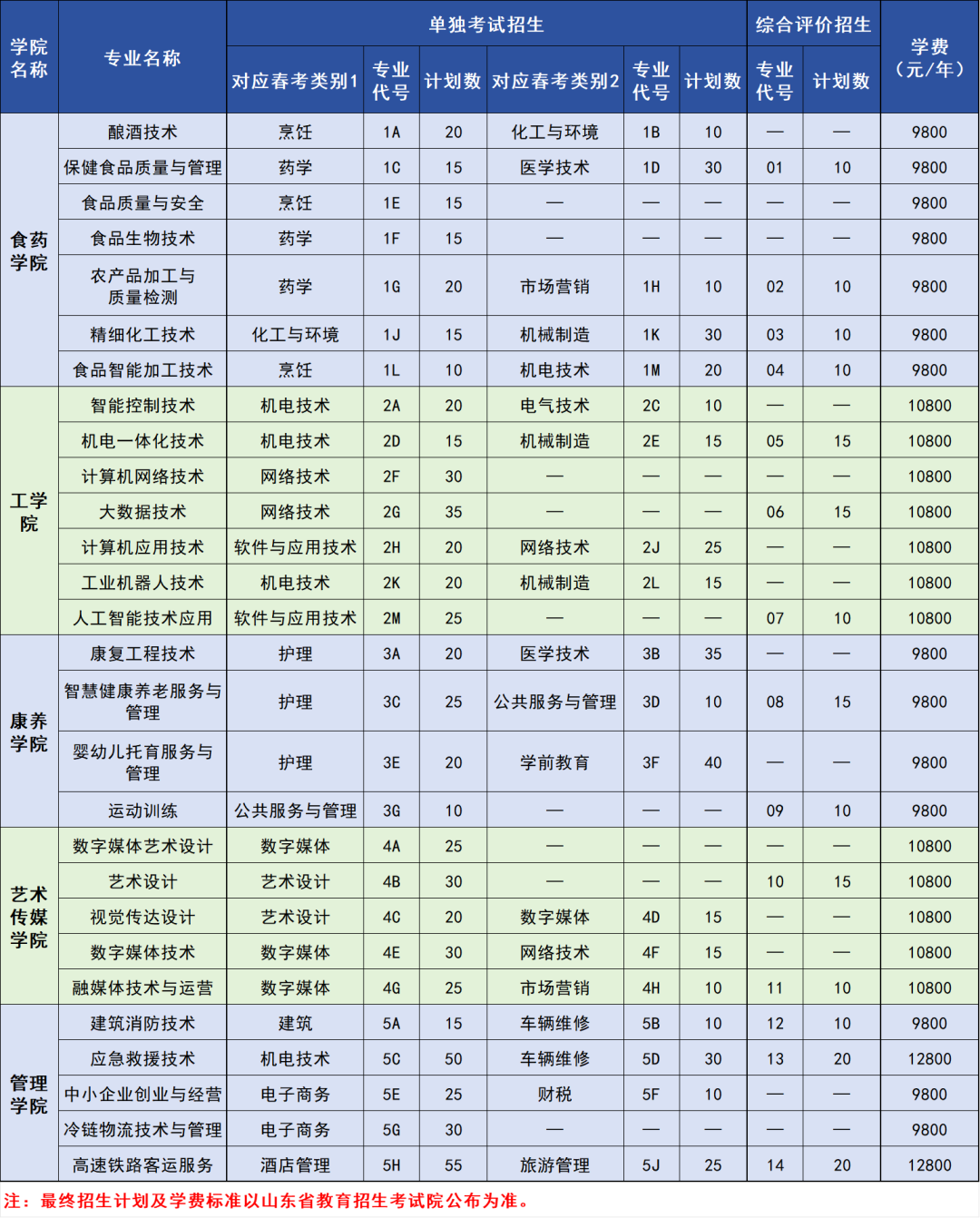 潍坊食品科技职业学院2026年单招综评报考指南