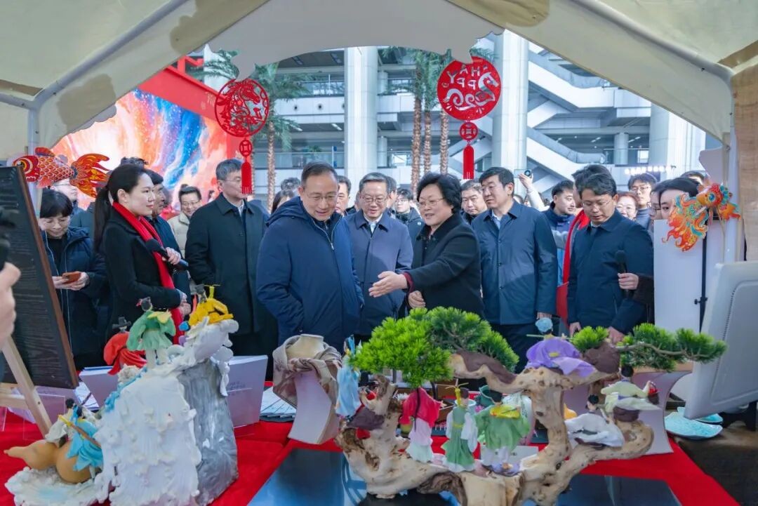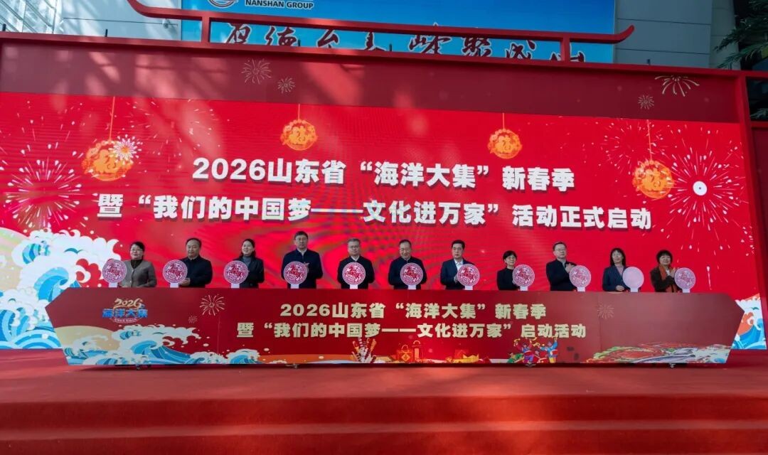 春潮涌动迎盛会,文旅惠民启新篇。2月4日上午,2026山东省“海洋大集”新春季暨“我们的中国梦——文化进万家”活动在烟台启动。本次活动由省委宣传部指导,烟台市委、市政府等单位主办,以“逛山东大集 购年货好品 过祥和春节”为主题,打造了集逛、赏、玩、购于一体的新春海洋消费场景。省、市领导出席启动仪式,烟台职业学院党委书记陈新姿,党委委员、副校长邵侠参加。仪式结束后,有关领导参观了同步举行的创新成果展。
