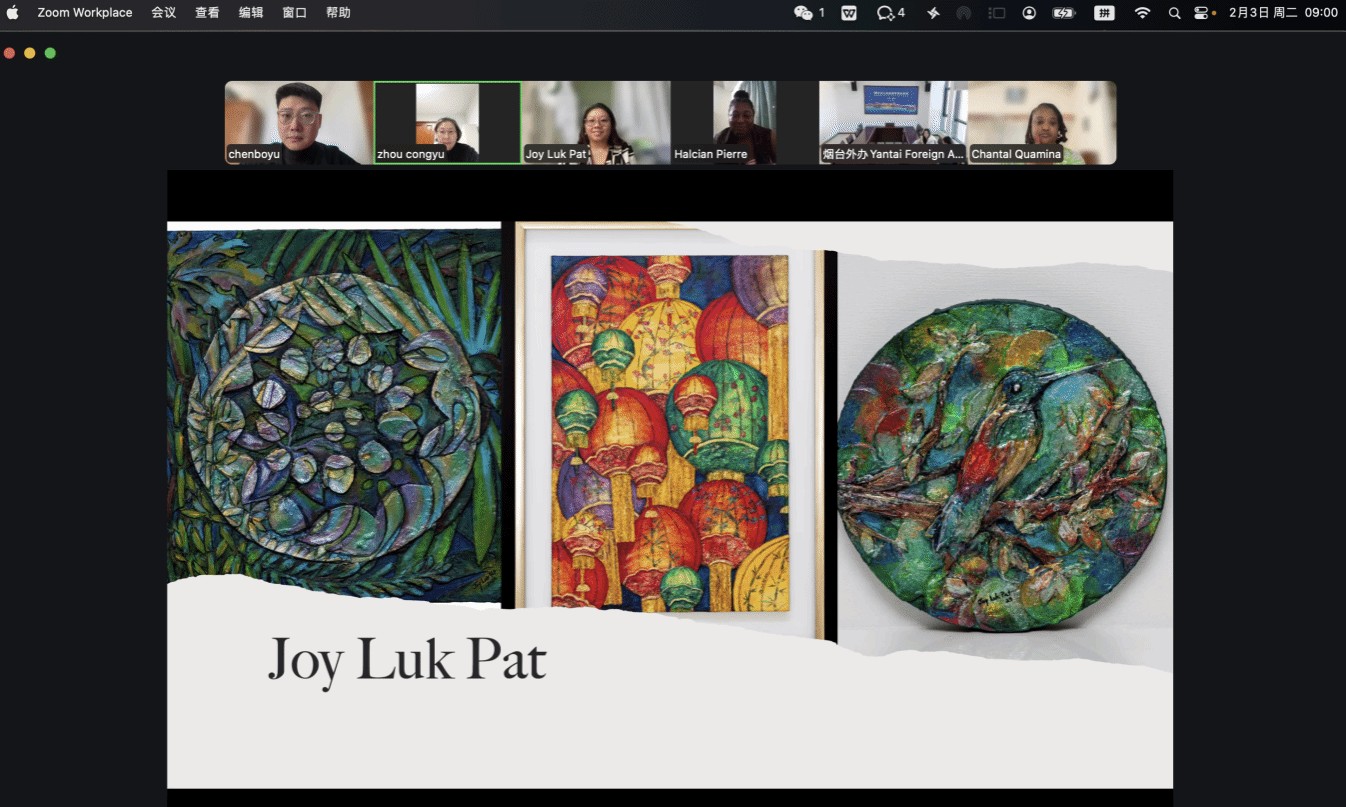 本次活动中方参会代表包括中国驻特多使馆、山东省外事办公室、烟台市外事办公室、山东商务职业学院国际教育学院与艺术设计学院等多位领导及师生代表共同参与。特多方面则由特多国家狂欢节委员会、特多文化艺术协会的领导与文化艺术相关专家共同组成。双方在线上亲切互动,气氛热烈。