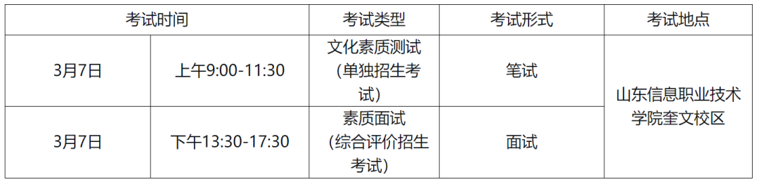 专业技能测试:由山东省教育招生考试院统一组织考试,考试时间、地点请关注山东省教育招生考试院官方网站。