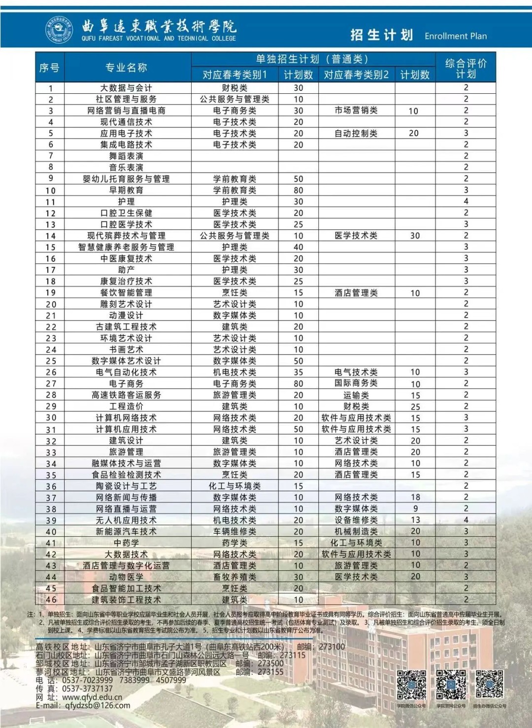 曲阜远东职业技术学院2026年单独招生/综合评价招生明白纸
