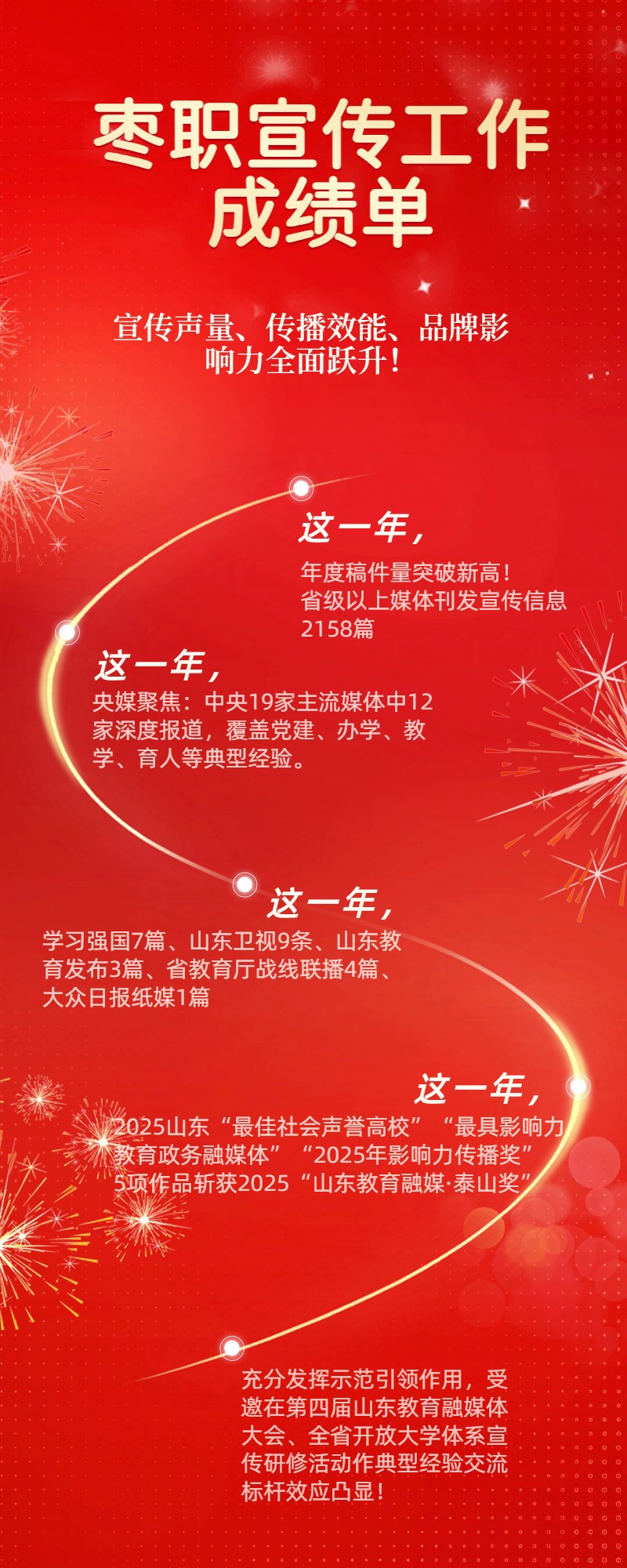 2025年,在学院党委的坚强领导下,党委宣传部携手全体枣职人紧扣 “举旗帜、聚民心、育新人、兴文化、展形象”的使命任务,凝心聚力、攻坚克难、奋勇争先,圆满完成各项重大宣传任务,实现宣传工作历史性突破。