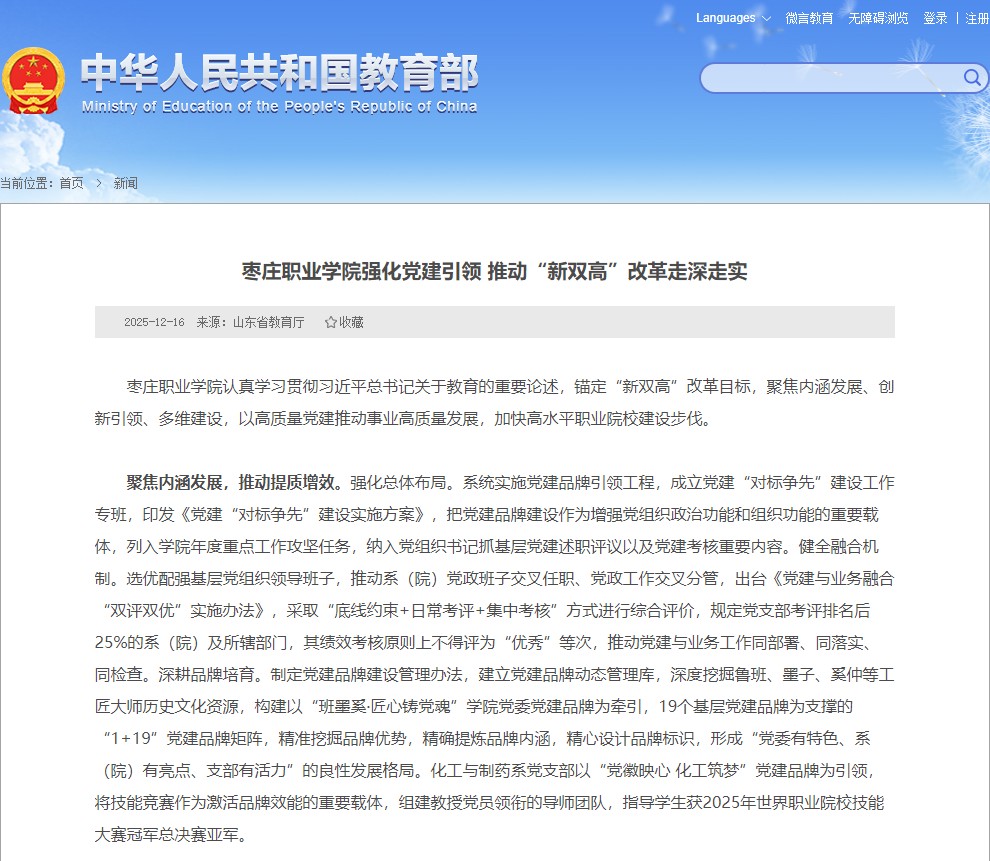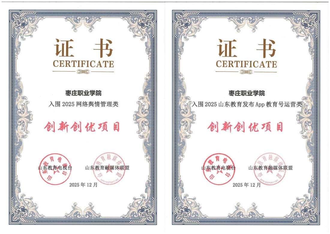 近日,枣庄职业学院收到山东省教育厅的表扬信,对学院2025年宣传工作给予表扬。信中充分肯定学院主动担当、锐意创新,在宣传实践中全面展现了新时代山东教育的良好形象,有效提升了山东教育的传播力与影响力。