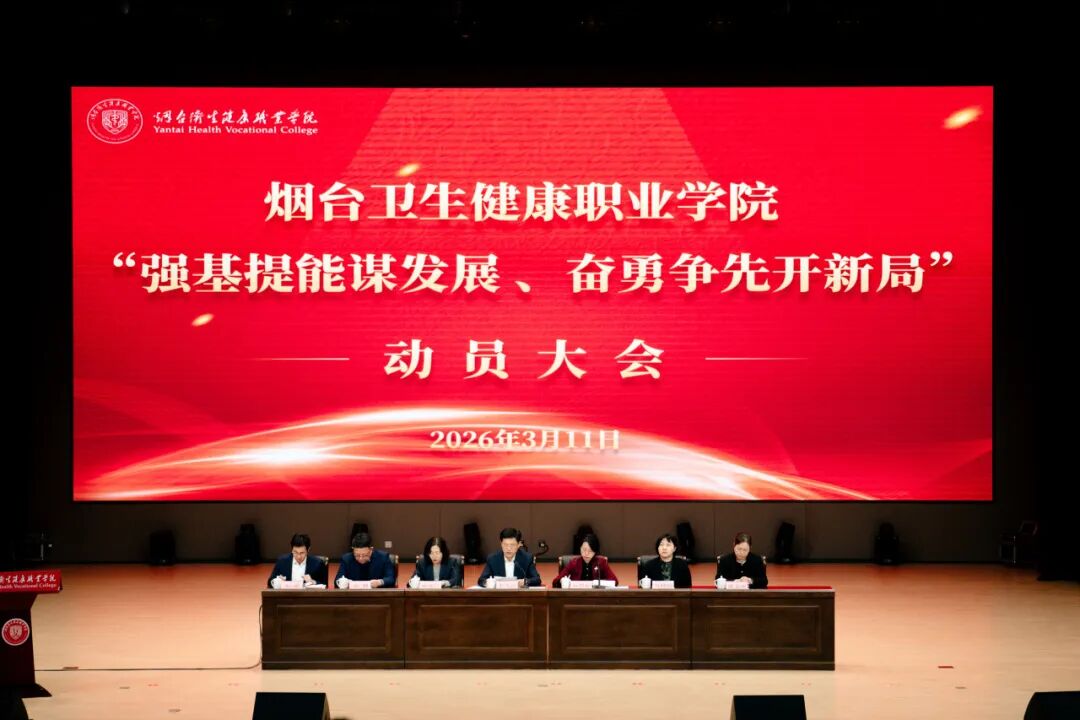 强基提能谋发展,奋勇争先开新局。3月11日,烟台卫生健康职业学院召开2026年春季学期教职工大会,回顾2025年工作成绩,表彰各领域涌现出的先进典型,安排2026年重点工作,凝聚全院共识,向着“十五五”高质量发展目标奋进。学院党委书记李天浩出席会议并讲话,党委副书记、院长石少婷主持会议,学院领导班子成员及全体教职工参加会议。