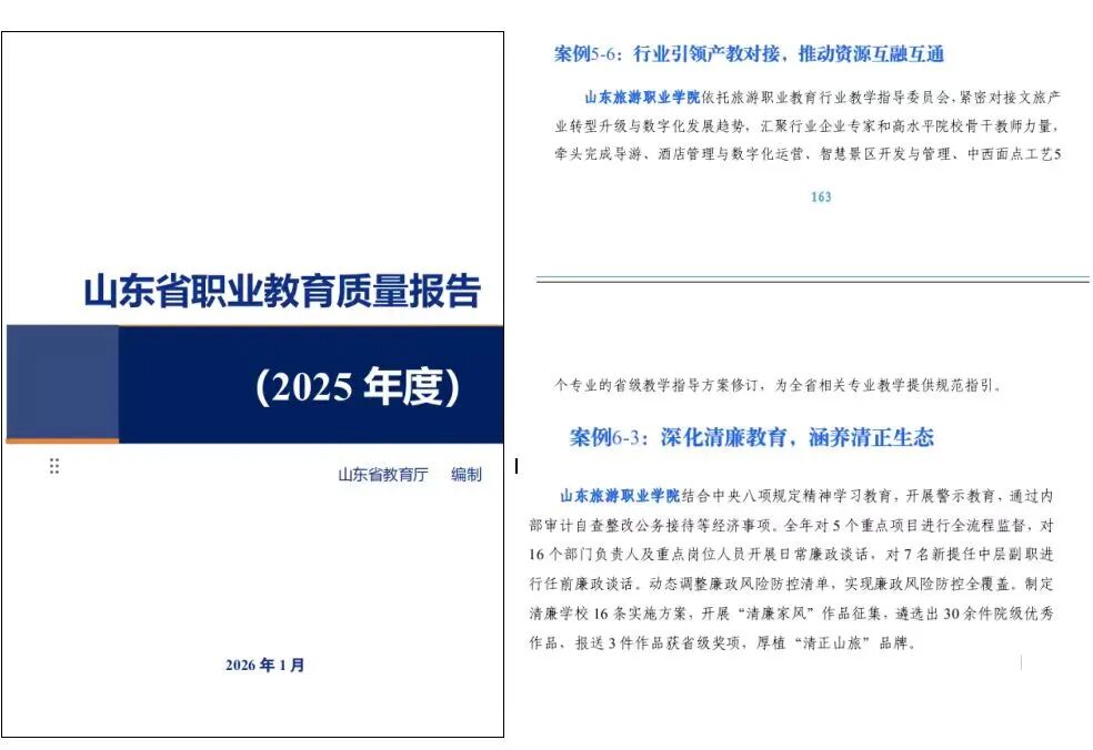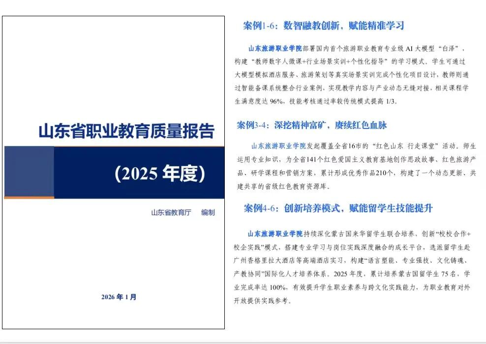 山东旅游职业学院5项案例入选《山东省职业教育质量报告(2025 年度)》