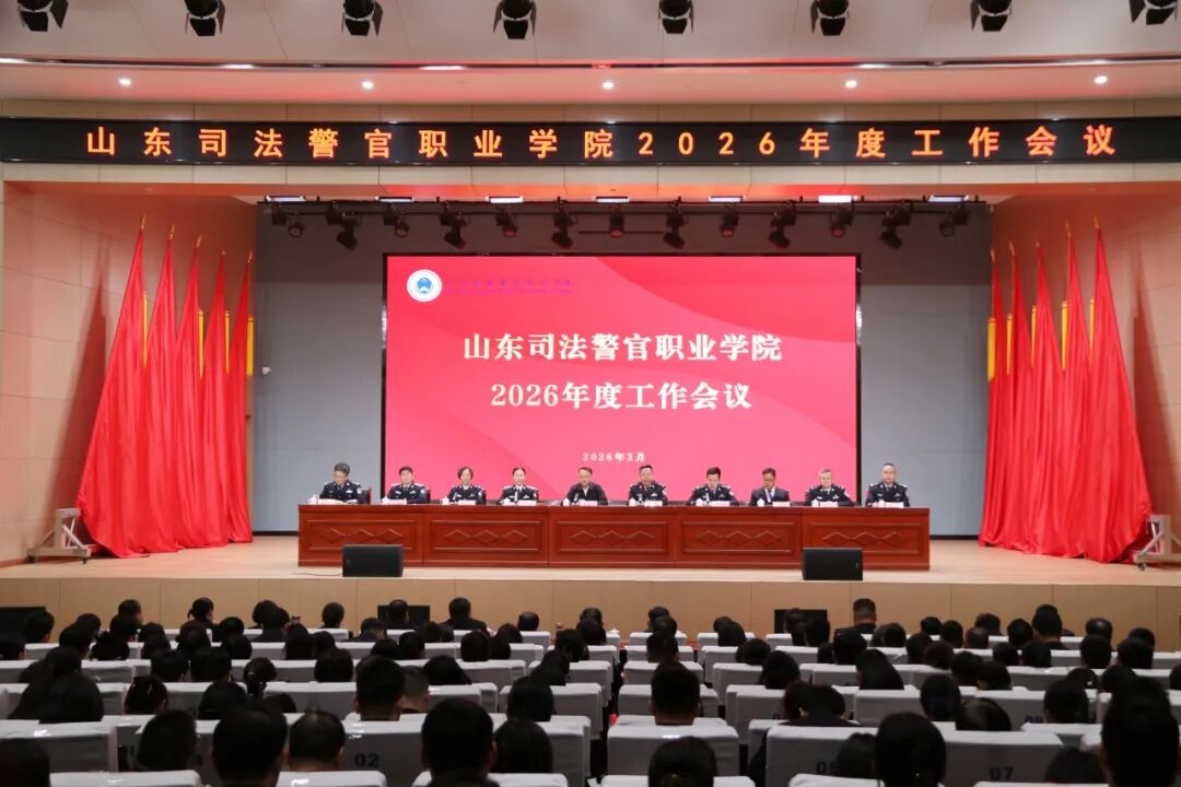 3月17日,山东司法警官职业学院在章丘校区召开2026年度工作会议。省司法厅党委委员、政治部(警务部)主任孙春雷出席会议并讲话,学院党委书记陈久亮代表学院党委作工作报告,学院党委副书记、院长郑丽主持会议,学院领导班子成员出席会议。会议坚持以习近平新时代中国特色社会主义思想为指导,深入学习贯彻习近平法治思想,全面落实中央政法工作会议、全国教育工作会议、全国司法厅局长会议以及省委政法工作会议、全省教育工作会议、全省司法行政工作会议精神,总结工作、分析形势,研究部署 2026年工作任务。