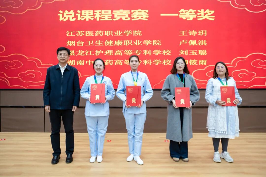 烟台卫生健康职业学院党委书记李天浩为获得说课程竞赛一等奖的选手颁奖。