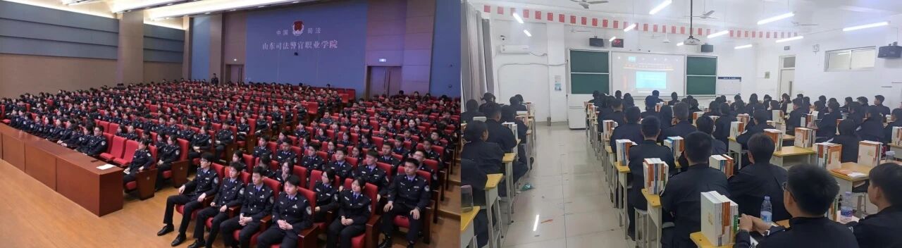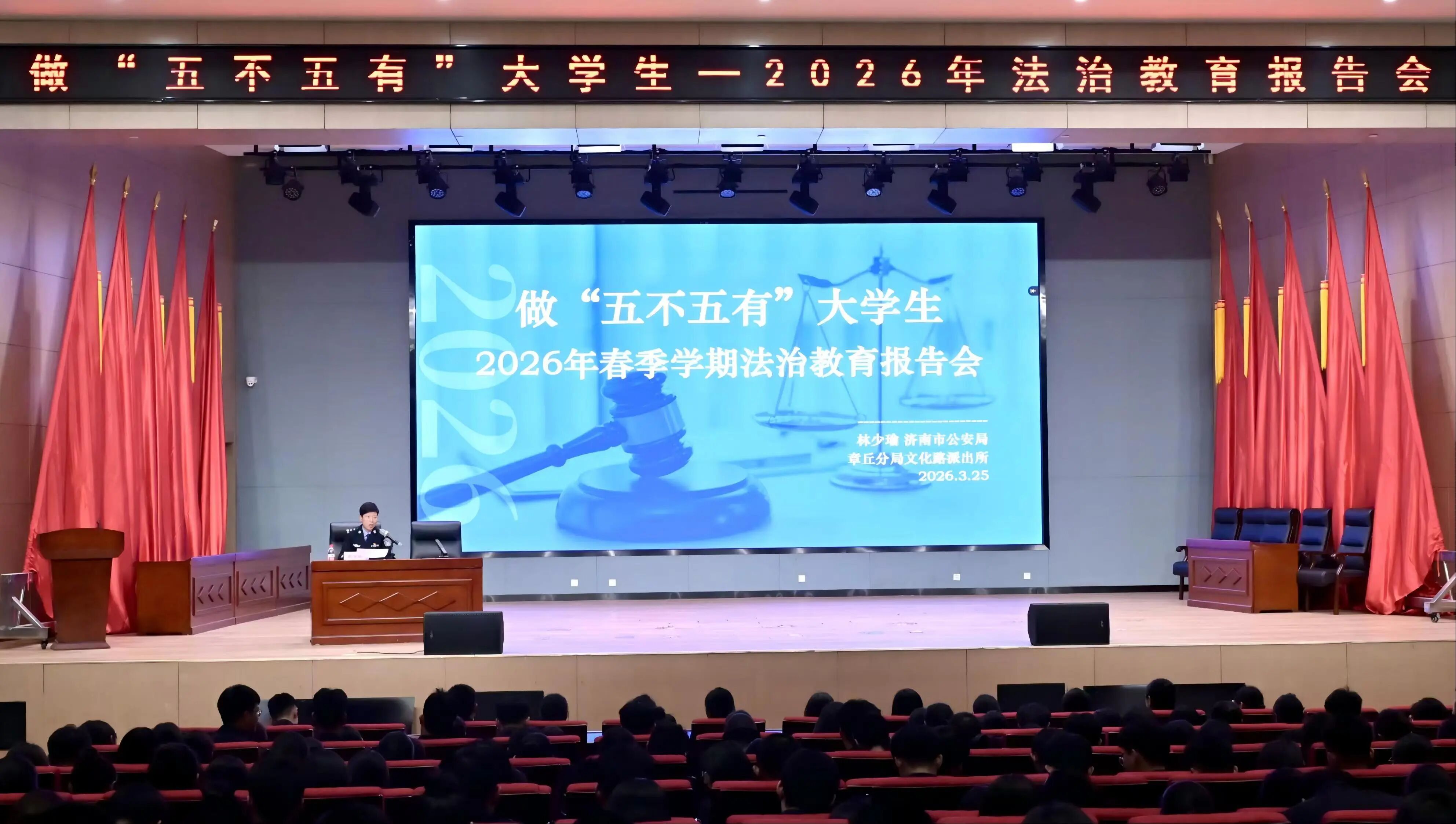 为持续开展国家安全主题宣传教育,结合“守纪、守法、守德”教育,进一步深化法治育人成效,引导广大学生明纪法、知敬畏、守底线,3月25日晚,山东司法警官职业学院在章丘校区报告厅举办了2026年春季学期法治教育讲座。讲座邀请了济南市公安局章丘分局文化路派出所副所长林少瑜主讲。活动以“线下讲座+线上直播”相结合的方式进行,学院全体中队长及在校学生观看学习。