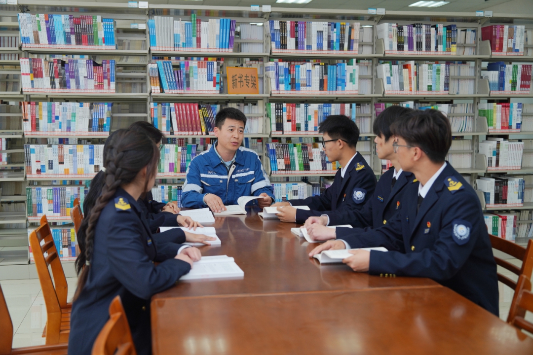活动还设置了“工匠荐书”“师生共读”环节。应急救援有限公司的焊工侯代鲁,讲述阅读如何在一道焊花中点燃灵感;大港公司内司王庆卫,用一本《内燃机原理》串联起自己从普通司机到集团技能大赛冠军的十年跋涉。工匠们向学生推荐了《港口机械与自动化》《电工实战技能手册》等一本本“压箱底”的好书,并互留联系方式,约定未来共读、共进。