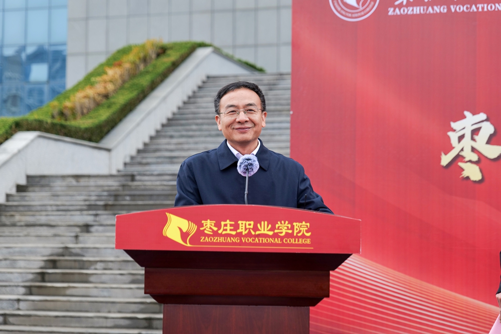 枣庄职业学院党委副书记、院长梁家和代表学院致辞。他介绍了学院近年来在人才培养、产教融合等方面取得的显著成效。他强调,学院高度重视毕业生就业工作,将其作为民心工程、民生工程,摆在突出位置、列为重中之重,通过多项举措拓宽毕业生就业渠道,全力推动毕业生高质量充分就业。随后,山东欣旺达政府事务部经理及优秀毕业生代表分别发言。最后,枣庄市人社局党组成员、副局长,市公共就业和人才服务中心主任李侠同志就枣庄产业发展、“榴枣工程”作进一步解读,同时表达了对枣庄职业学院人才培养质量的高度认可,也送上了对全体毕业生未来发展的美好祝愿。