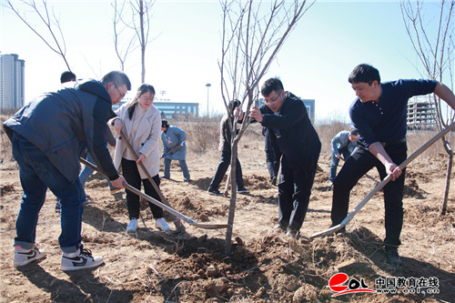 党委书记耿金波说:十年树木,百年树人。今天我们植树,希望它早日开花结果。我们要像栽树一样,优化育人环境,提升教学档次,精细化管理,培养德智体美劳全面发展的合格人才!