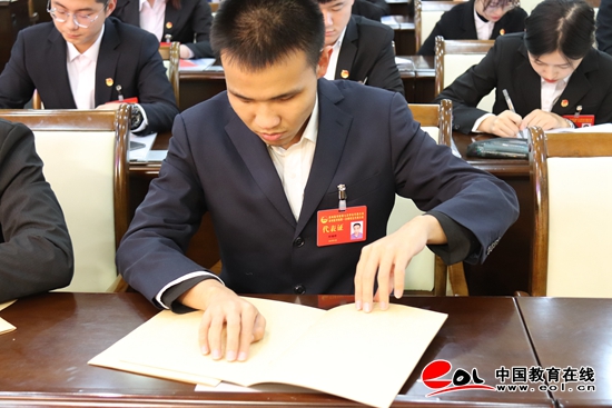 时瑜皓作为一名视障学生代表第一次参加学代会,他激动说:“我是第一次在学代会上行使选举权利,第一次用特制的盲文选票进行选举,我感到无比的光荣,这是一种使命。”