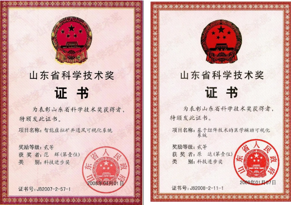 2008年 获山东省科技进步奖二等奖1项,获中国煤炭工业科学技术奖二等奖1项