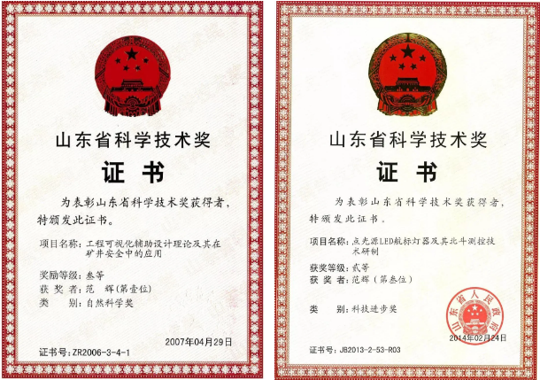 2009年 获山东省科技进步奖二等奖1项,获中国煤炭工业科学技术奖三等奖1项