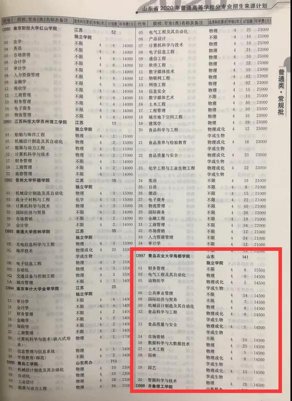 权威发布 | 青岛农业大学海都学院本科各专业填报志愿页码和代码