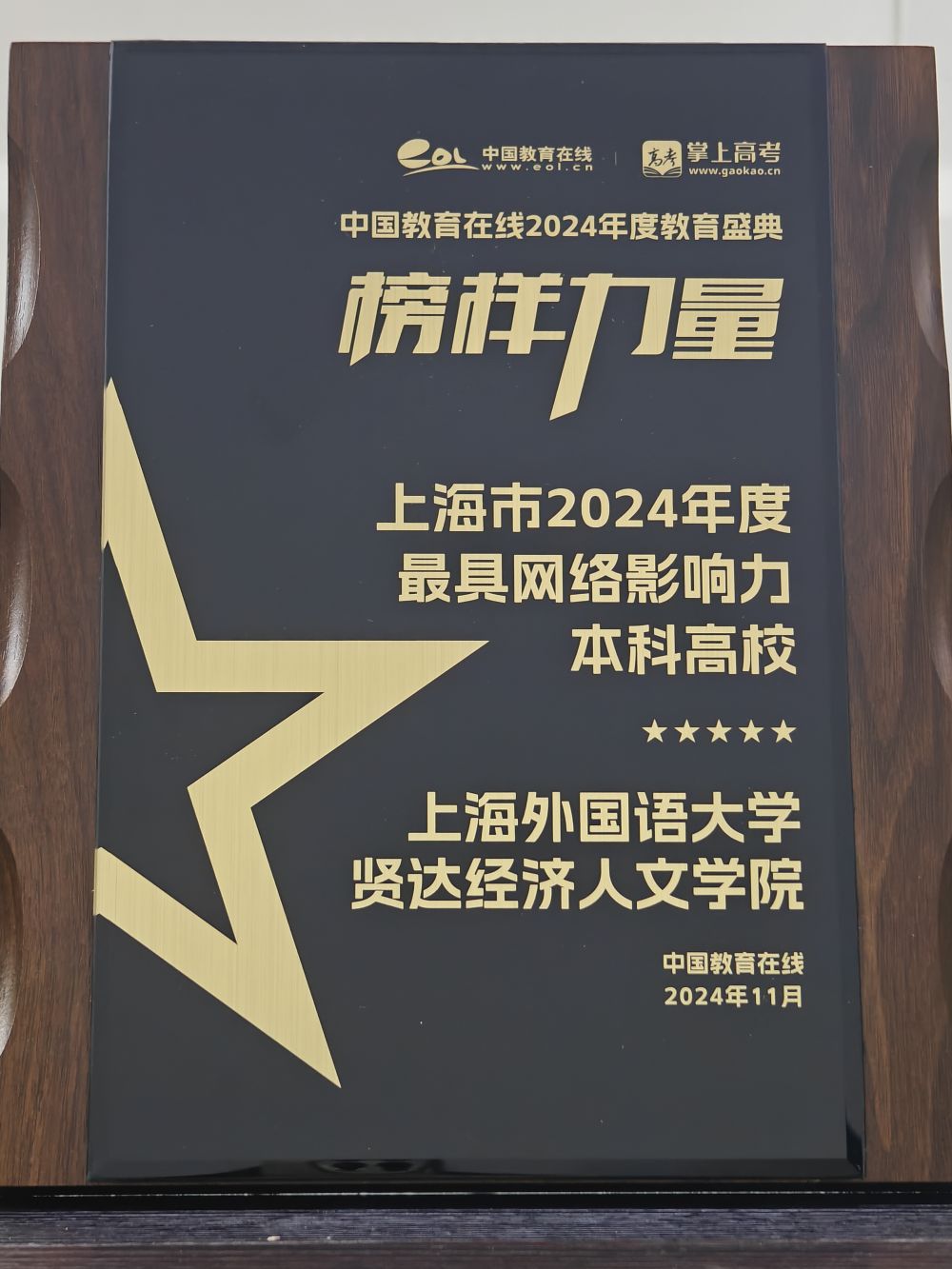近日,中国教育在线“榜样力量·2024年度教育盛典”优秀案例公示。上海外国语大学贤达经济人文学院凭借极具创新性与前瞻性的招生宣传策略,以及扎实过硬的宣传执行实力,从众多高校中突围,获评“上海市2024年度最具网络影响力本科高校”。