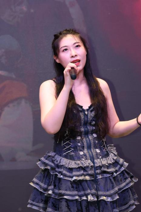 ▲上海开放大学表演艺术专业学生赵烨晖带来富有激情的演唱