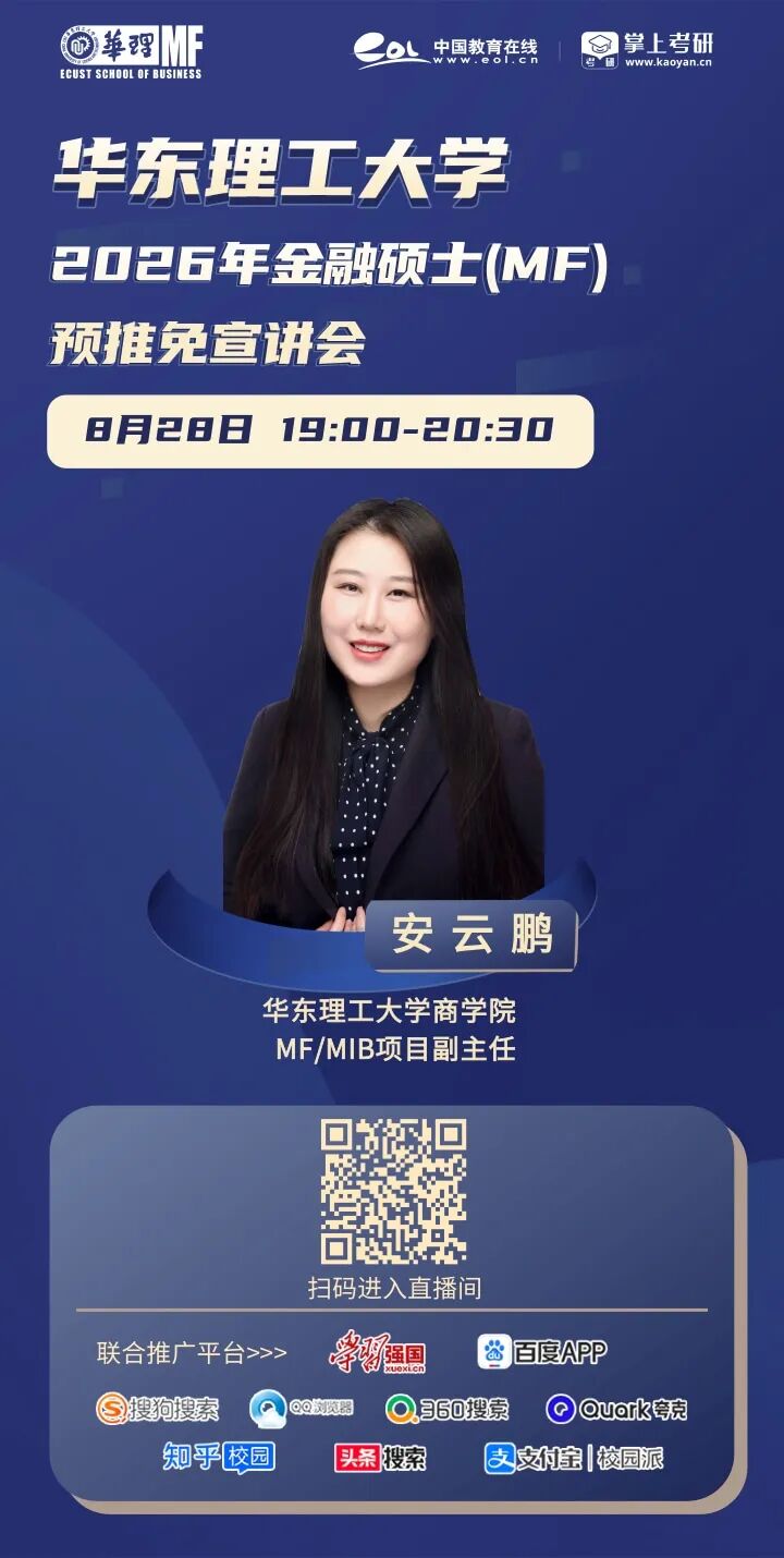 倒计时一天 | 华东理工大学金融硕士(MF)预推免宣讲会