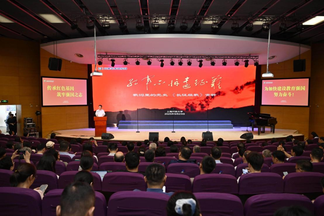 深受触动,掌声不断,心潮澎湃!今年是中国人民抗日战争暨世界反法西斯战争胜利80周年,也是新中国成立76周年,为深入开展党史学习教育和爱国主义教育,9月23日下午,学校下半年“高雅艺术进校园”活动精彩开启,特邀上海歌剧院艺术团队带来《歌词里的党史,<长征组歌>赏析》文艺思政课。本次活动也是学校两级党委中心组联学、“师德师风建设月”的重要活动以及党员学习教育的重要内容之一。校党委理论学习中心组成员,二级党组织理论学习中心组成员以及部分党员、教职工代表等近290人参加了活动。校党委书记闵辉致辞,校党委副书记、副校长孙向彤主持活动。