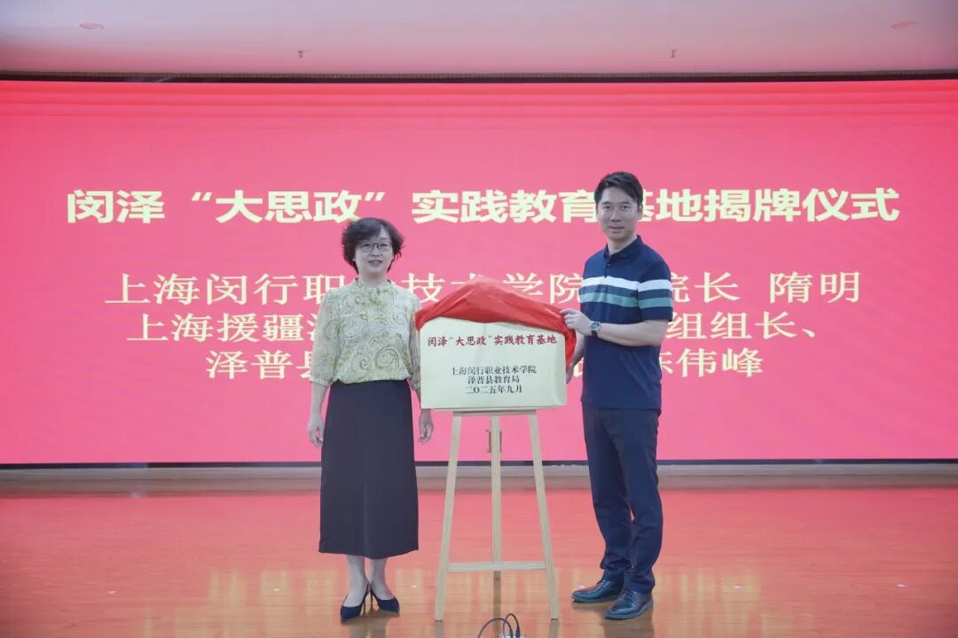 上海闵行职业技术学院充分发挥产教融合与技术育人优势,精心设计“AI+职教+非遗”三位一体的研学课程。活动当天,上海援疆泽普分指教育事业组组长、泽普县教育局副局长陈伟峰与闵职院副院长隋明共同为闵泽“大思政”实践教育基地揭牌,标志着两地教育协作从短期交流迈向机制化、平台化发展。基地将依托闵职院在人工智能、智能制造、非遗传承等领域的教学资源,构建“线上万里同研+线下沉浸体验”的长效协同育人模式。