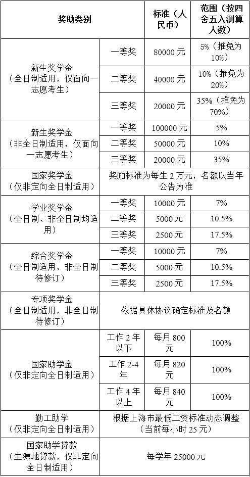 硕士研究生奖助体系基本情况如下表所示,具体以研究生部官网公告为准。