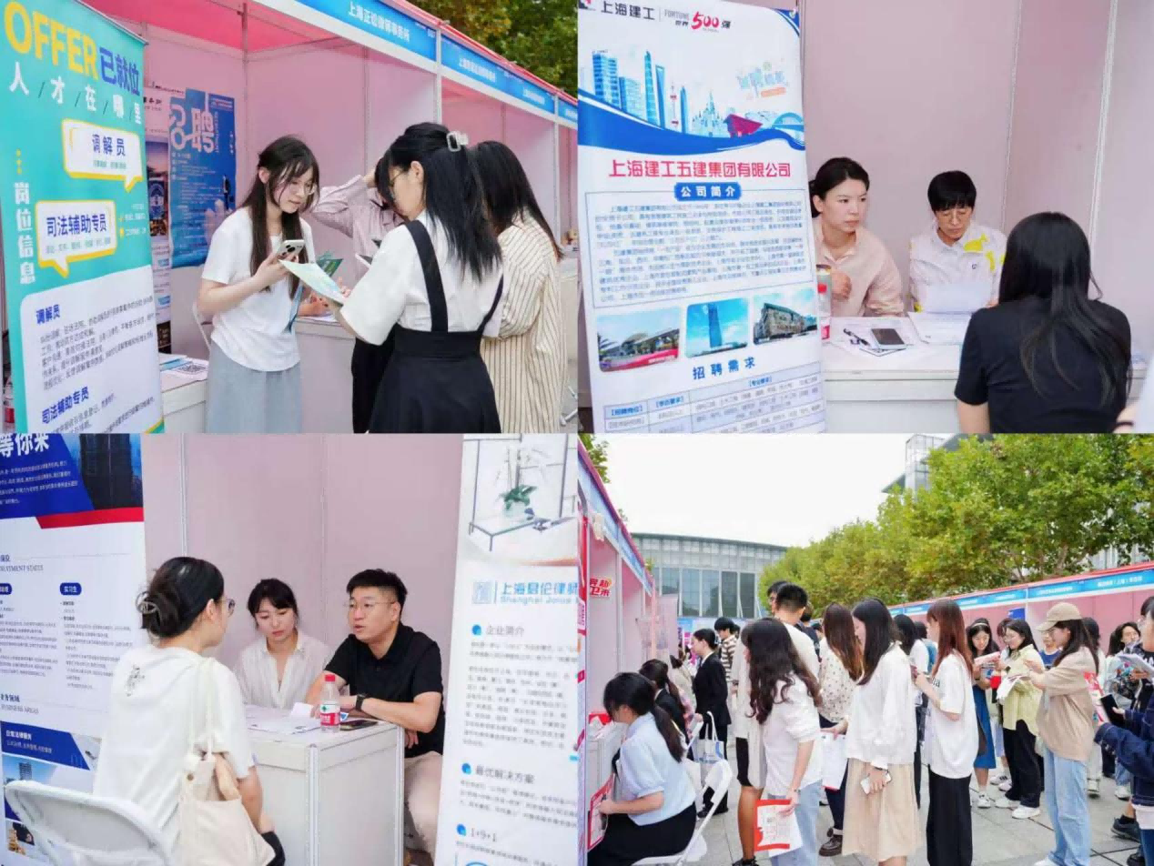 与此同时,本次招聘会现场同步开设了“AI线上招聘专区”,为学子拓宽求职渠道,进一步促进人岗精准匹配;招聘会还特设人工智能与科创企业专区,并联动青浦区重点企业、长三角企业资源,构建了多元招聘矩阵,从多方面为上政学子高质量充分就业提供支持。据统计,线上专区访问量突破 3000 人次,累计点击超 3 万次,意向投递量达 1200 余份;线下招聘会同样捷报频传,现场人头攒动,毕业生精神饱满,校企互动热烈,现场应聘毕业生超 2000 人次,简历投递量达 5000 余份。此外,学校还联动半岛酒店、卫到贸易等企业开设多场线下面试会。共有 800 余名毕业生现场参与现场企业面试,其中 400 余人与企业达成初步用人意向。