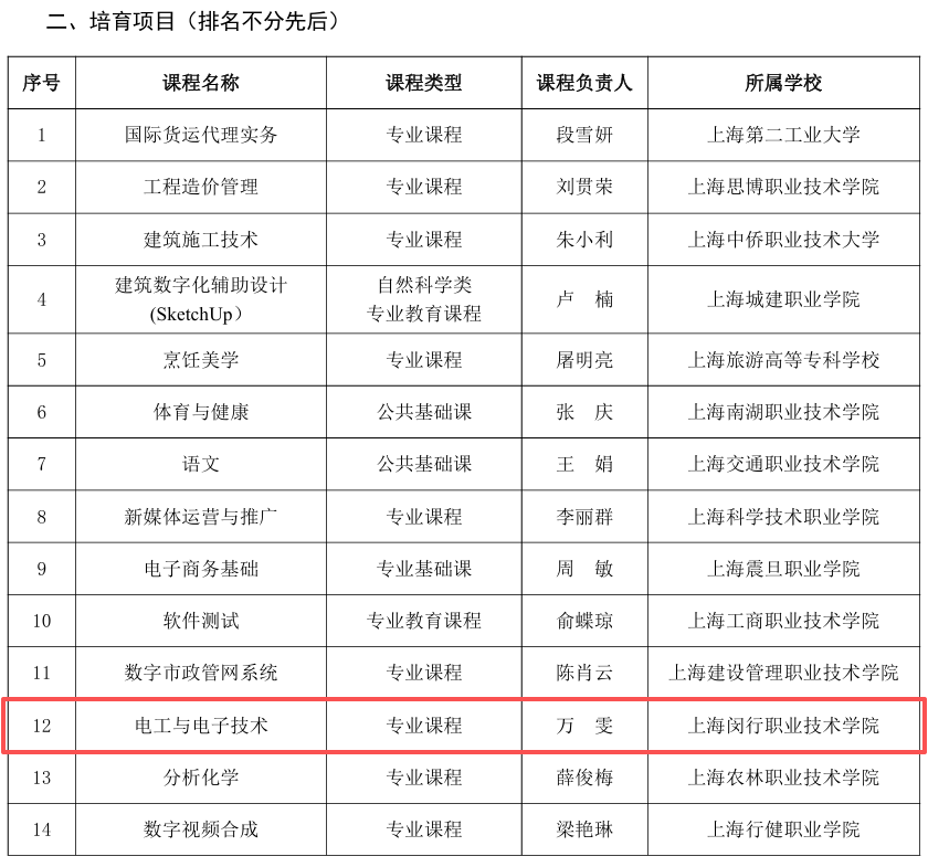 近日,上海市高职高专课程思政与文化素养教育教学指导委员会正式公布2025年度上海市高职高专课程思政优秀课程建设立项名单,上海闵行职业技术学院成果丰硕,共有2门课程成功入选,其中《生成式人工智能技术应用》获批立项项目,《电工与电子技术》获评培育项目,充分彰显了学校在课程思政建设领域的扎实功底与创新实力。
