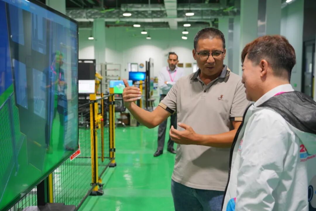 介绍过程中,项目导师金晓磊带领四位学生现场演示智能仓储系统的库存查询、补货预警功能,同步展示卡丁车项目的设计稿,直观呈现两大项目的阶段性成果。代表团不时就智能仓储系统的数据对接逻辑、卡丁车项目的商业落地路径等问题进行深入交流。CareStar机器人公司创始人Alan Ng结合新加坡在智慧物流与数字娱乐领域的发展经验,对智能仓储项目“产教融合解决实际痛点”、卡丁车项目“多维度设计覆盖用户需求”的思路给予高度肯定,现场互动氛围热烈。