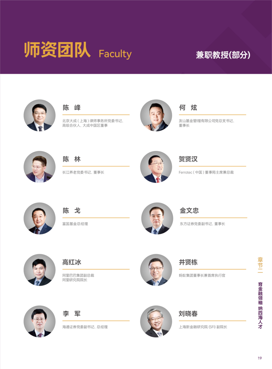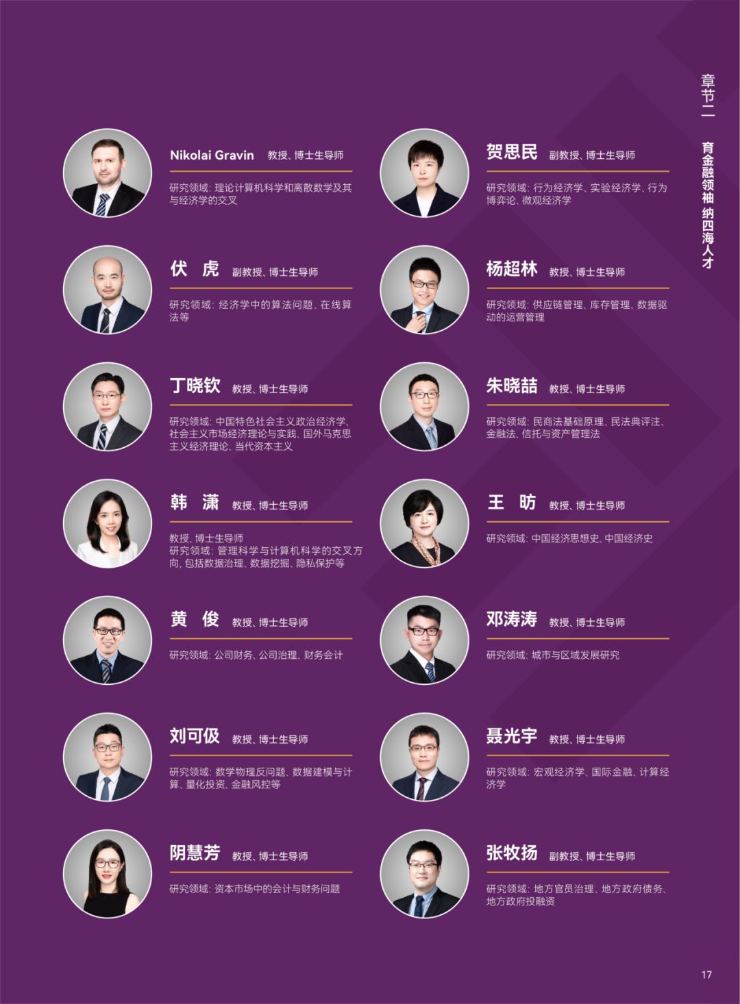 学院已在全球招募组建一支百余人的顶尖师资团队,吸引世界级教授,位居学术前沿、金融前沿、科技前沿领域的教授和业界领军人物担任导师。