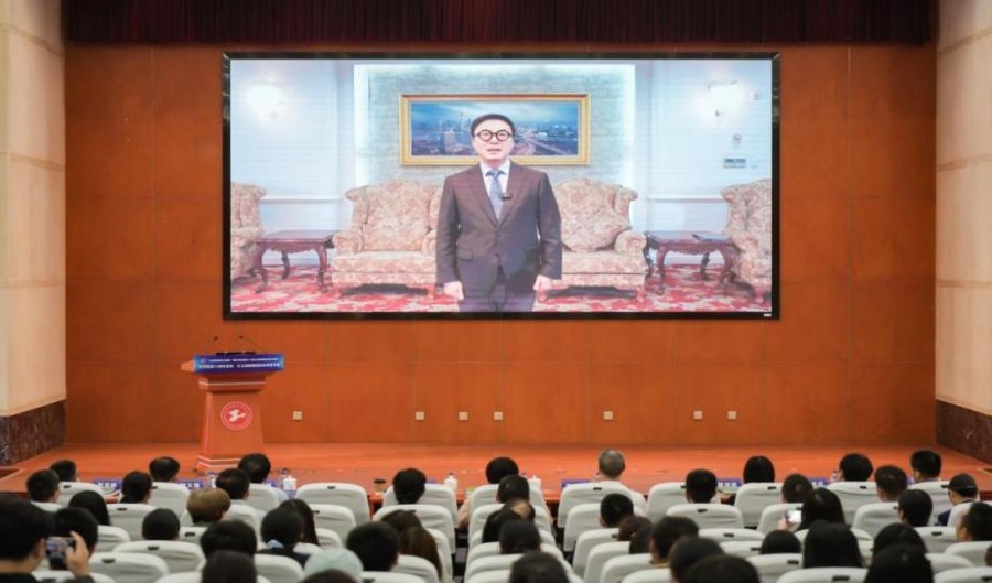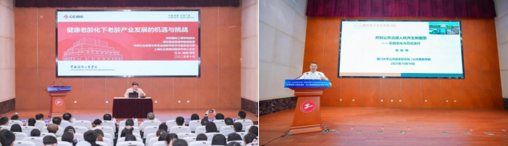 为了更好地培养在养老服务管理领域中的应用创新型人才,管理学院成立跨学科专业、跨行业领域、跨区域边界的数智康养产业联合创新实验室,涵盖智能制造、品质消费、健康管理、智慧养老等多个领域。联合创新实验室的成立,是在整合政府、企业、高校、科研机构等产学研平台资源基础上,推动技术创新与业态升级、促进产业集群发展的重要举措。依托上海工程技术大学本身的优势特色学科,以“工程+管理+设计” 三旋翼创新发展理念,契合数智康养产业全链条发展的需求逻辑,为全国数智康养产业高质量发展贡献力量。在联合创新实验室的创建之下,落地了健康养老照护产学研合作项目签约,同时还进行了捐赠仪式,上海人寿堂养老服务(集团)有限公司捐赠了一套数智康养系列设备,国融乐养健康科技(上海)有限公司捐赠了一套数智健康管理系统,并且举行了中美青年创客大赛2026年主办的授旗。
