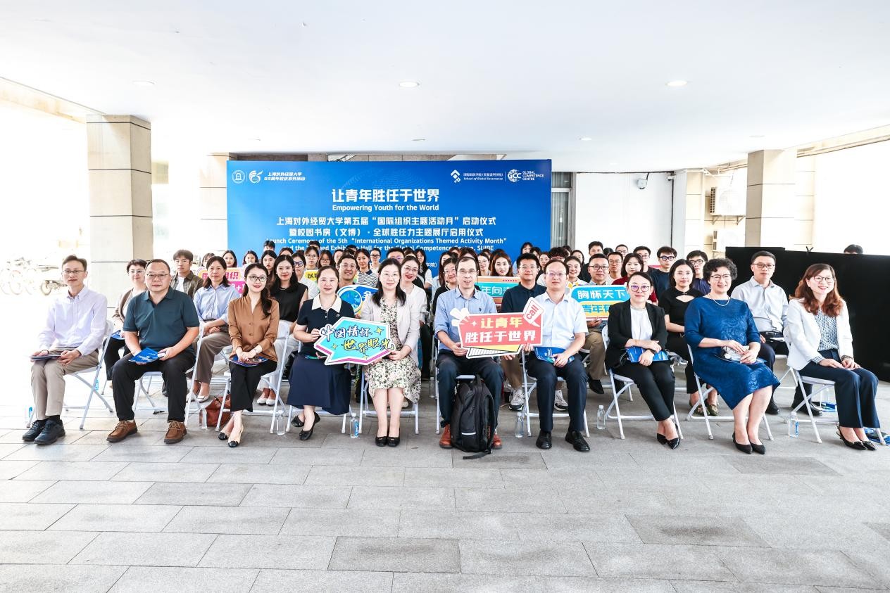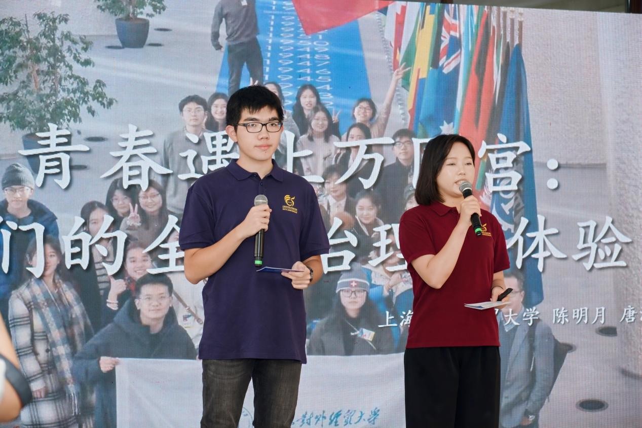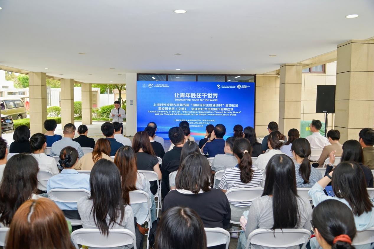 近日,上海对外经贸大学第五届“国际组织主题活动月”启动仪式暨校园书房(文博)·全球胜任力主题展厅启用仪式在长宁校区举行。校领导、相关职能部门和学院负责人、国际组织专家与师生共同启动国际组织主题活动月,并参观了新落成的展厅。在活动现场,唐潮和国际商务外语学院研究生陈明月为师生们开设了一场别开生面的“全球胜任力”微课:“当青春遇见万国宫:我们的全球治理初体验”,分享了他们假期里参加学校组织的赴瑞士日内瓦国际组织参访的经历。