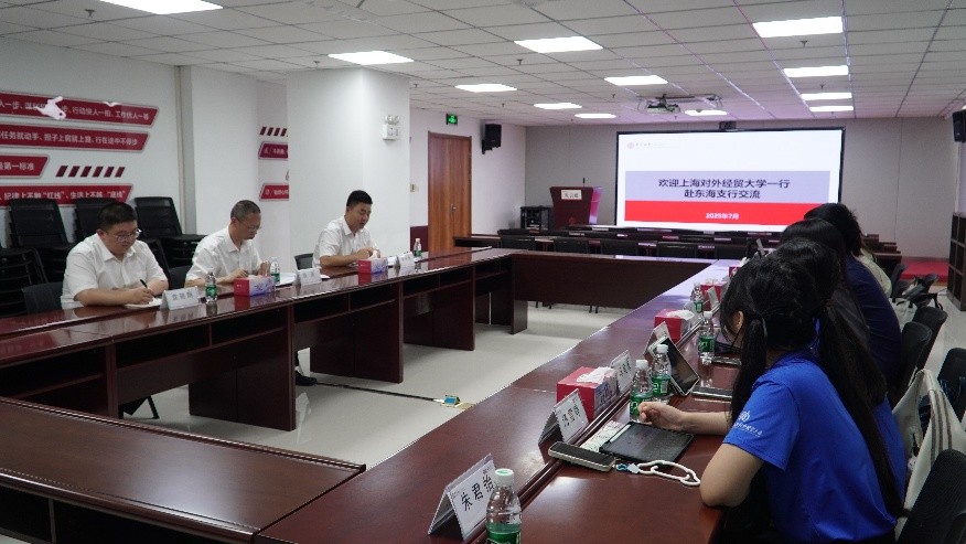 (上海对外经贸大学师生与中国银行东海支行营业网点负责人员会谈)