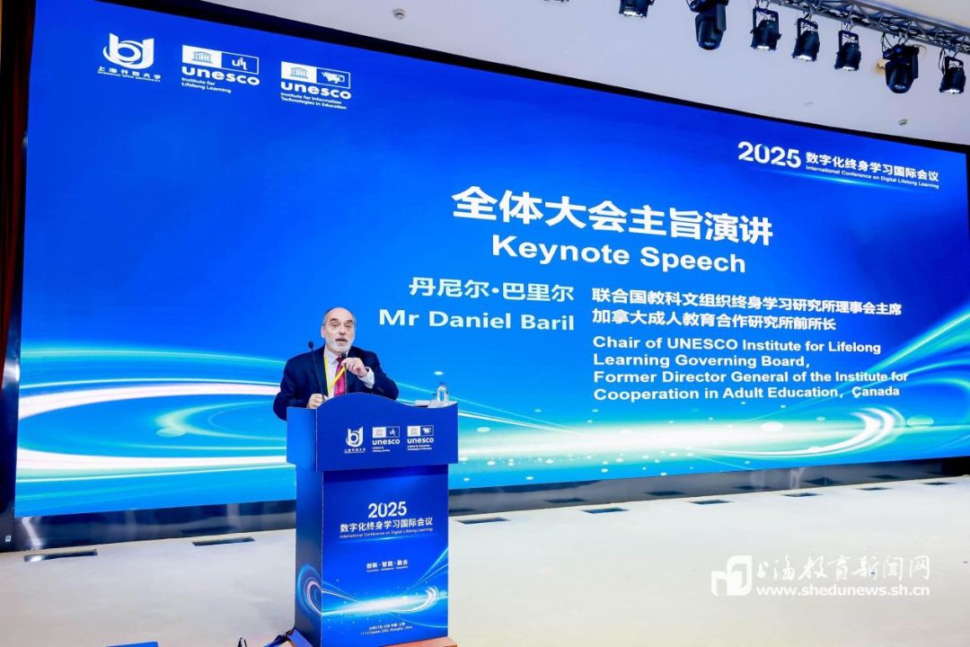 联合国教科文组织终身学习研究所理事会主席,加拿大成人教育合作研究所前所长丹尼尔·巴里尔,就“生成式人工智能时代教育权的持续演进”这一主题发表演讲。