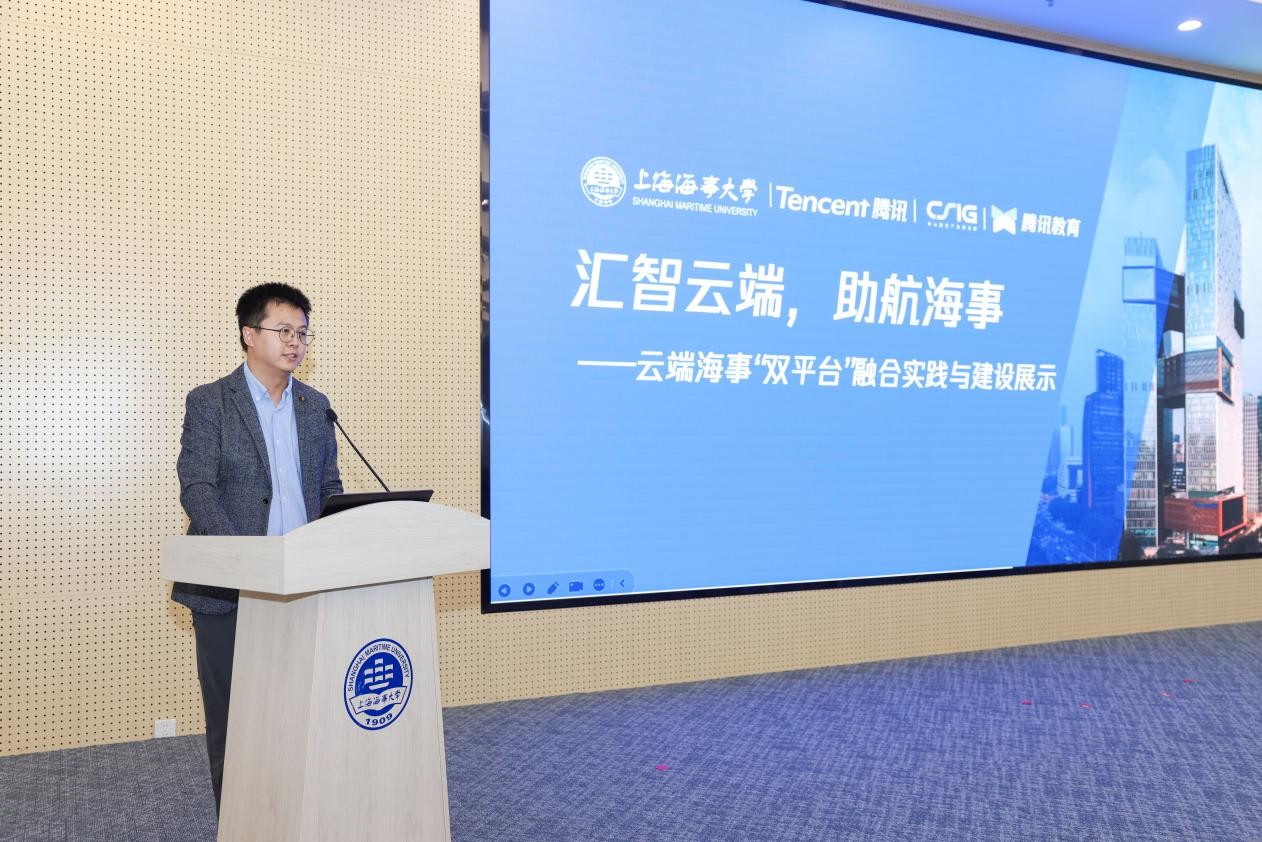 11月8日,上海海事大学与腾讯云联合主办的“人工智能助力海事教育暨云端海事大学‘双平台’发布会”在该校举行。校长初北平、副校长严伟,腾讯云副总裁兼腾讯教育负责人石梅等嘉宾莅临现场,150余名师生代表共同见证这一海事教育数字化转型的重要时刻。