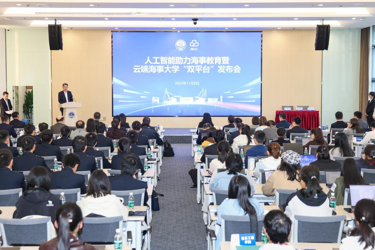 图1. 学校举办“人工智能助力海事教育暨云端海事大学‘双平台’发布会”