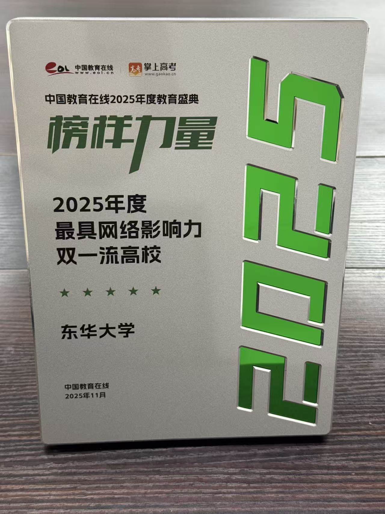 近日,中国教育在线“榜样力量·2025年度教育盛典”优秀案例名单公布。东华大学凭借极具创新性与前瞻性的招生宣传策略,以及扎实过硬的宣传执行实力,从众多高校中突围,获评“2025年度最具网络影响力双一流高校”。