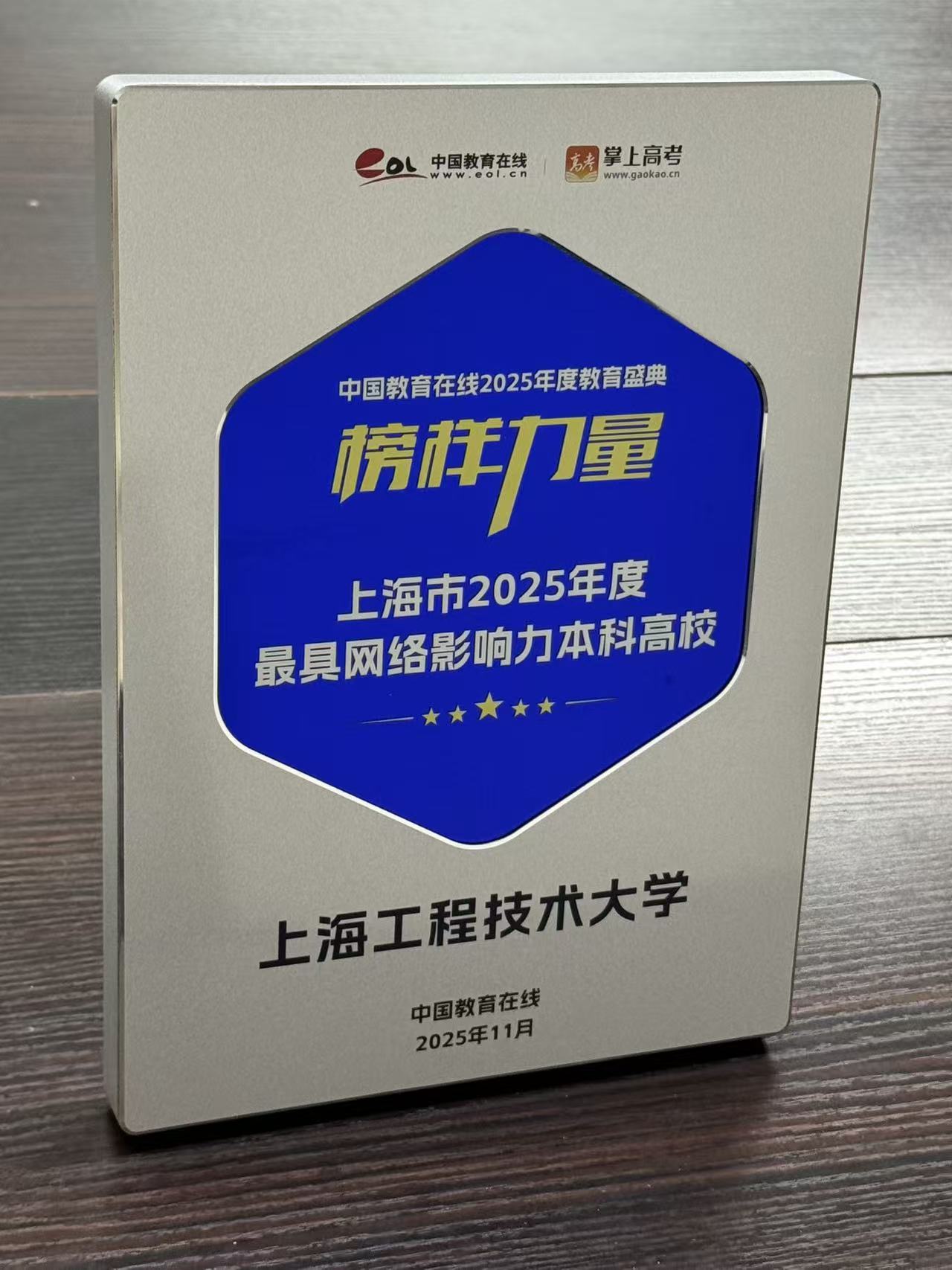 近日,中国教育在线“榜样力量·2025年度教育盛典”优秀案例名单公布。上海工程技术大学凭借极具创新性与前瞻性的招生宣传策略,以及扎实过硬的宣传执行实力,从众多高校中突围,获评“上海市2025年度最具网络影响力本科高校”。