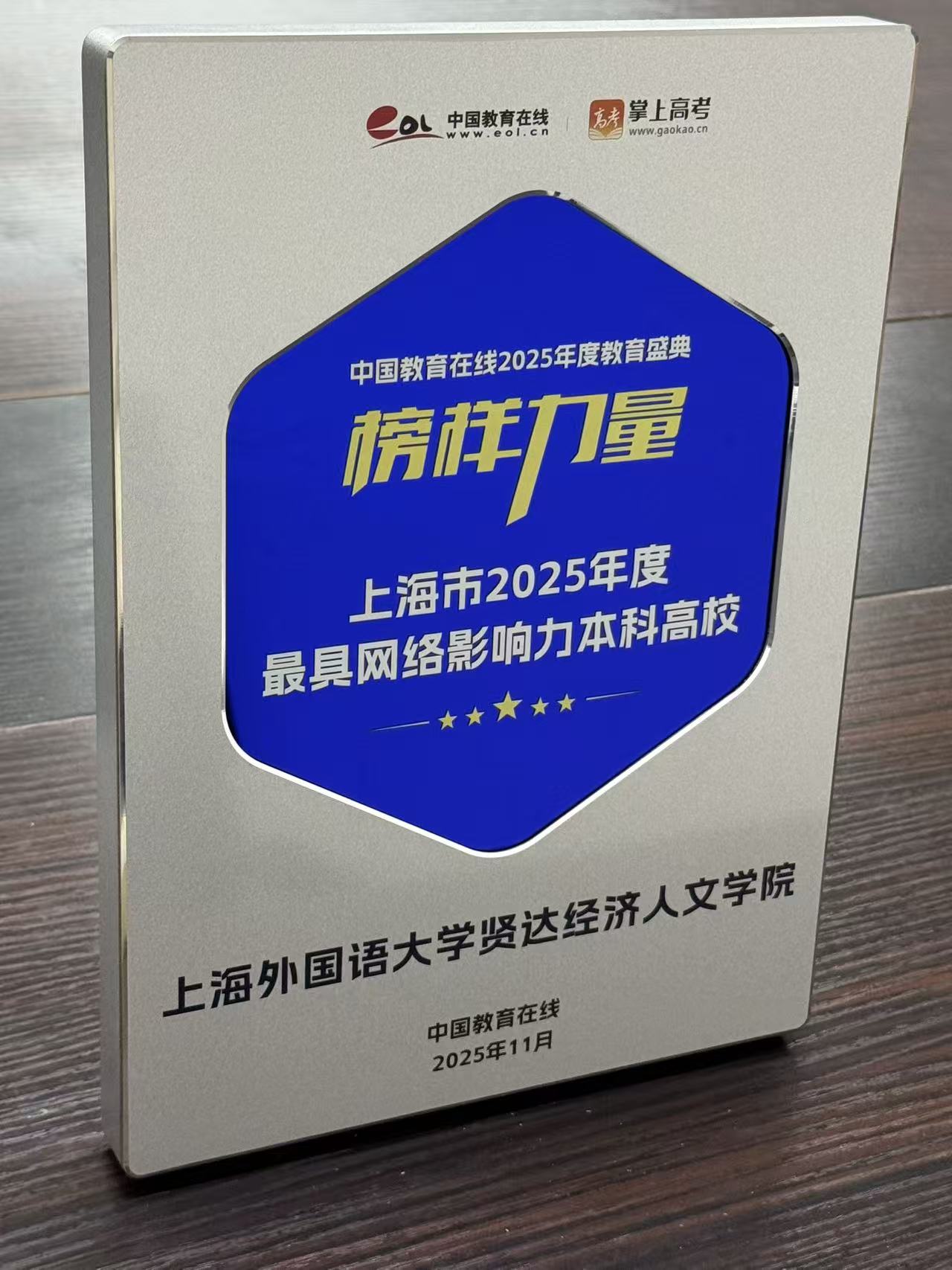 近日,中国教育在线“榜样力量·2025年度教育盛典”优秀案例名单公布。上海外国语大学贤达经济人文学院凭借极具创新性与前瞻性的招生宣传策略,以及扎实过硬的宣传执行实力,从众多高校中突围,获评“上海市2025年度最具网络影响力本科高校”。