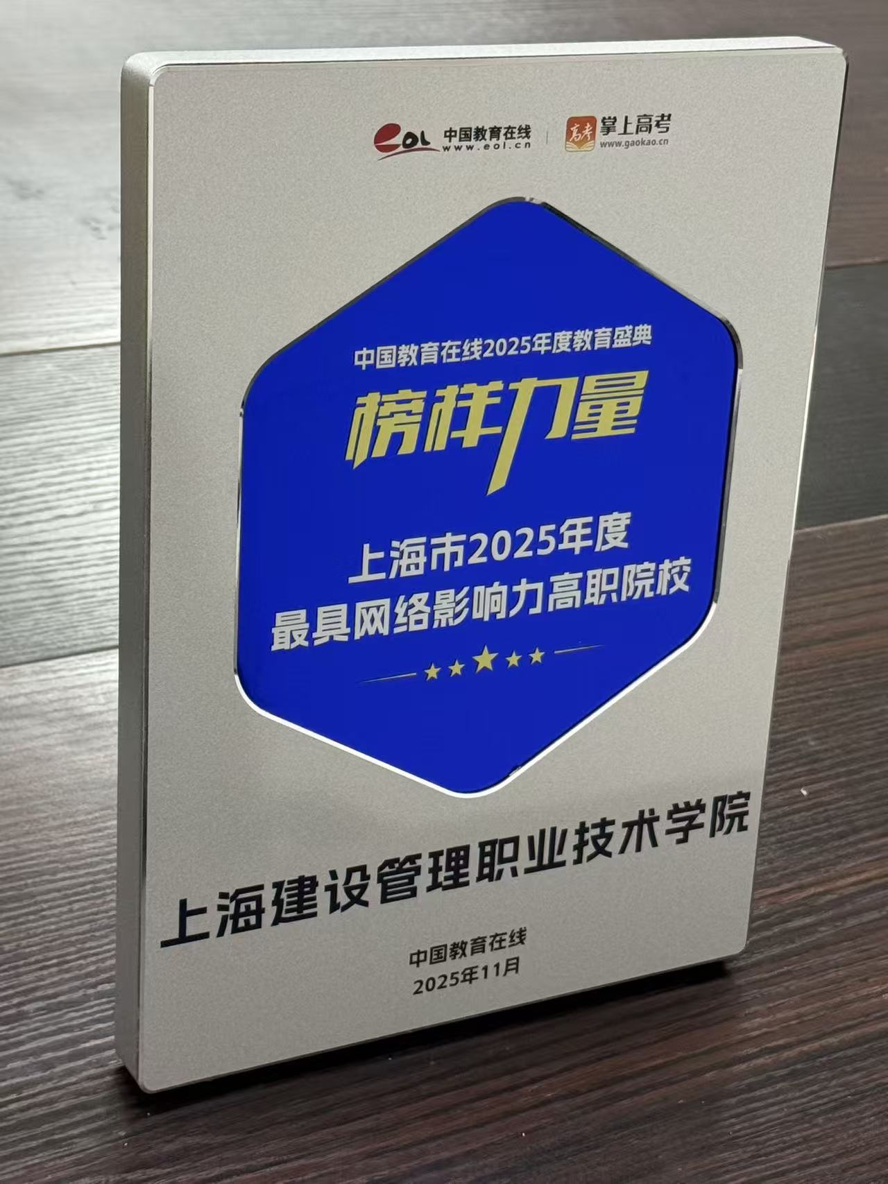 近日,中国教育在线“榜样力量·2025年度教育盛典”优秀案例名单公布。上海建设管理职业技术学院凭借极具创新性与前瞻性的招生宣传策略,以及扎实过硬的宣传执行实力,从众多高校中突围,获评“上海市2025年度最具网络影响力高职院校”。