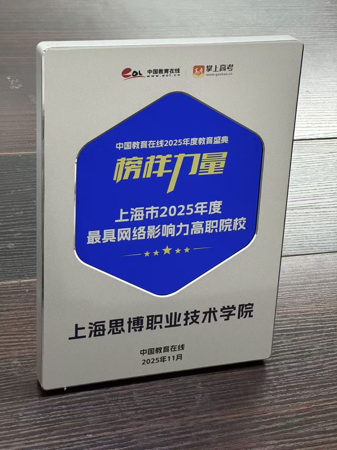 近日,中国教育在线“榜样力量·2025年度教育盛典”优秀案例名单公布。上海思博职业技术学院凭借极具创新性与前瞻性的招生宣传策略,以及扎实过硬的宣传执行实力,从众多高校中突围,获评“上海市2025年度最具网络影响力高职院校”。