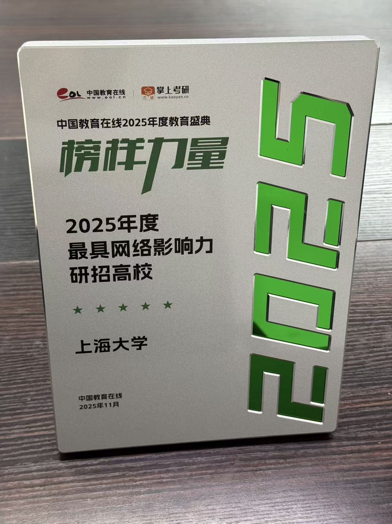 近日,中国教育在线“榜样力量·2025年度教育盛典”优秀案例名单公布。上海大学凭借极具创新性与前瞻性的招生宣传策略,以及扎实的宣传执行实力,从众多高校中突围,获评“2025年度最具网络影响力研招高校”。