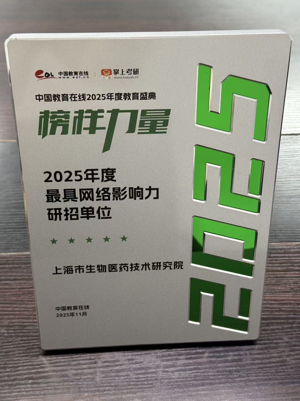 近日,中国教育在线“榜样力量·2025年度教育盛典”优秀案例名单公布。上海市生物医药技术研究院凭借极具创新性与前瞻性的招生宣传策略,以及扎实的宣传执行实力,获评“2025年度最具网络影响力研招单位”。